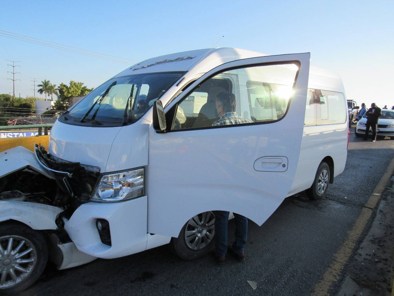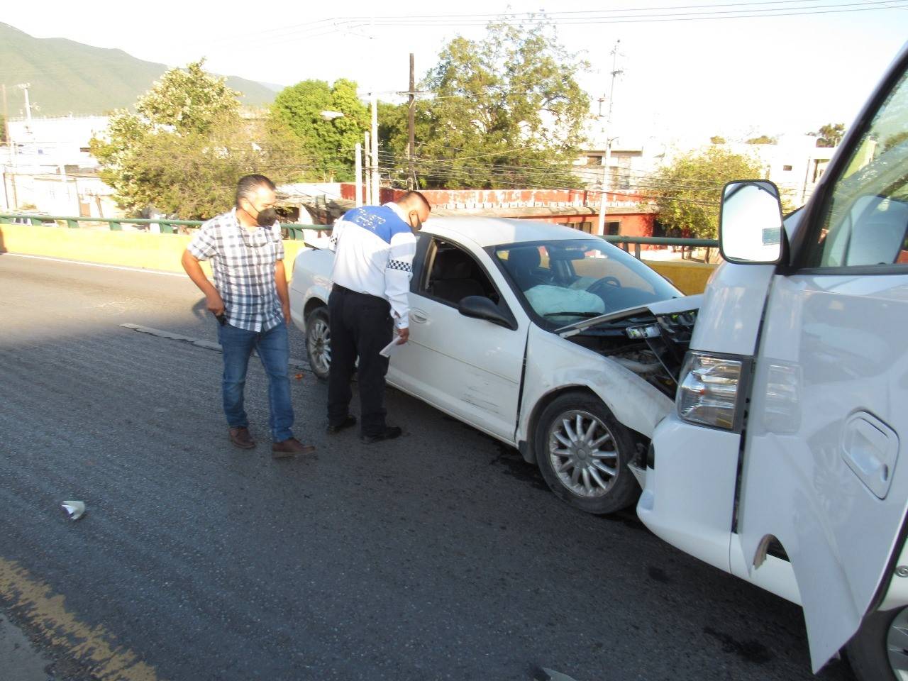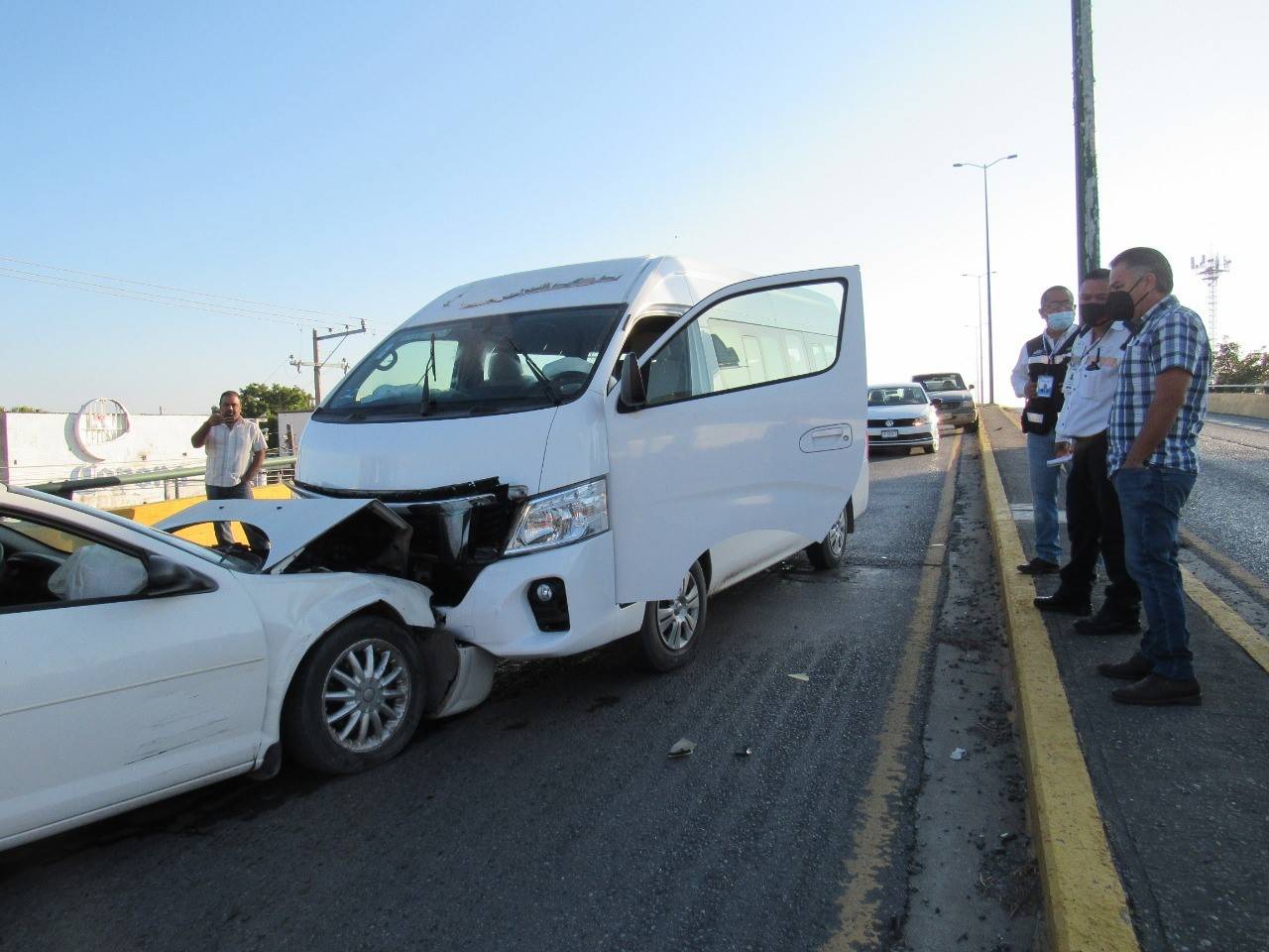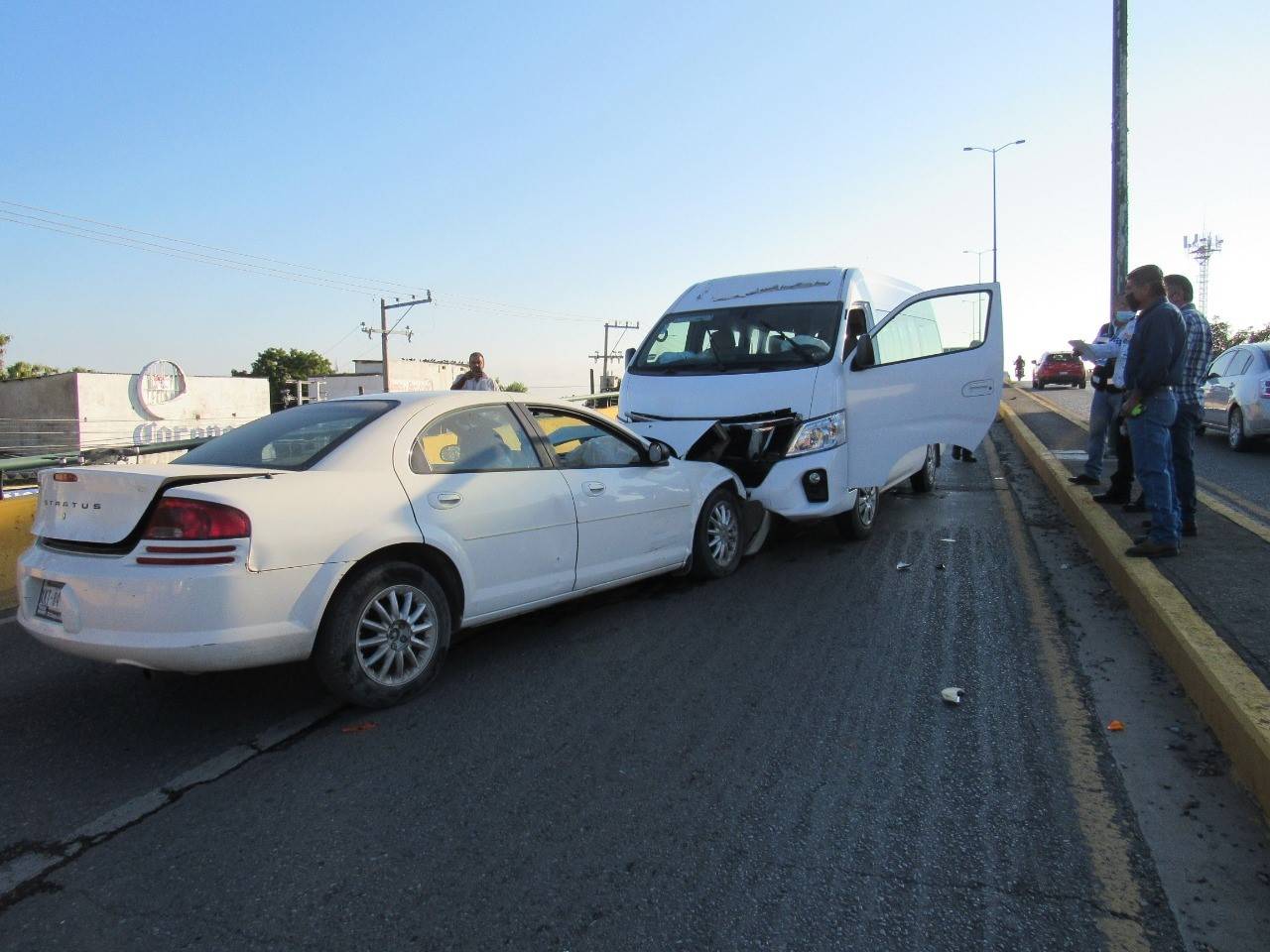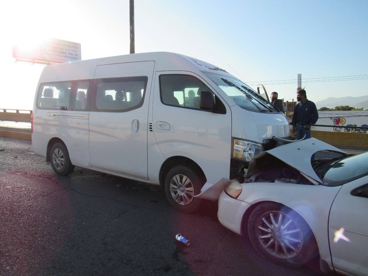 Tras avanzar varios metros el vehículo Stratus fue impactado por una camioneta marca Nissan tipo Urvan que circulaba por la "Joroba" en condiciones normales en sentido de oriente a poniente.