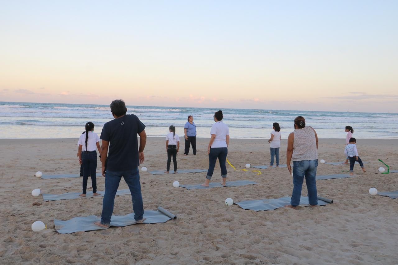 Con el apoyo del DIF Madero y DIF Tampico, se realizaron en la playa Miramar dos sesiones con la participación de más de 50 personas en cada una de ellas, ambientadas naturalmente por la tranquilidad del amanecer y el atardecer del día.