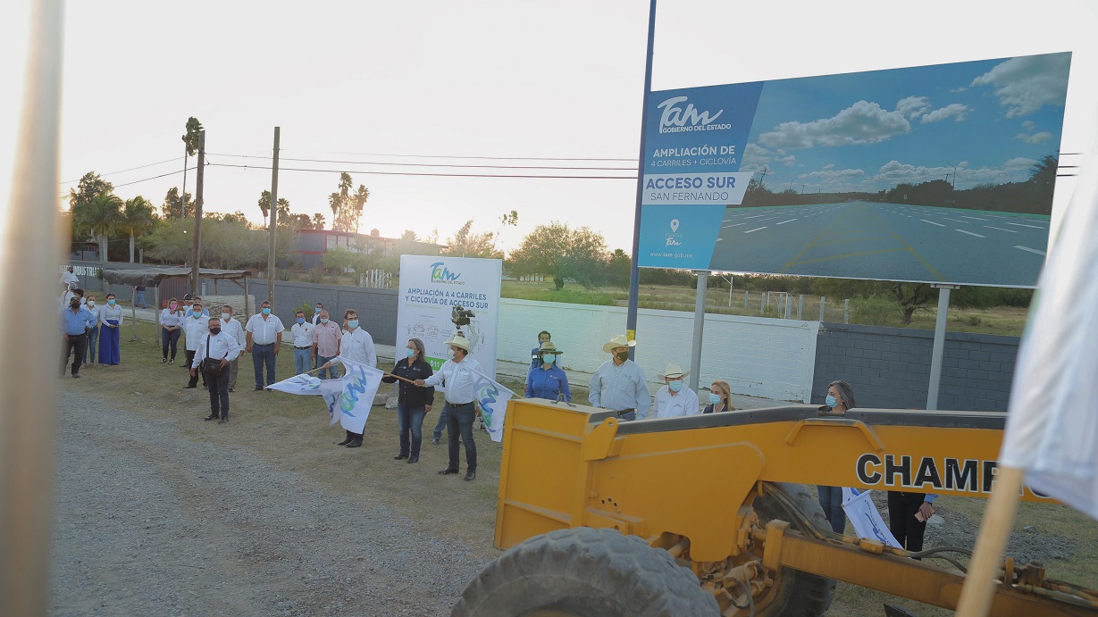 Antes de concluir esta gira de trabajo, el Gobernador se trasladó al tramo carretero acceso sur San Fernando-Jiménez, donde dio el banderazo a la ampliación a 4 carriles más ciclovía, obra que beneficiará a transportistas, ganaderos, agricultores y transporte público que diariamente transitan por esta carretera. La obra vial recibirá un presupuesto de $11 millones de pesos.