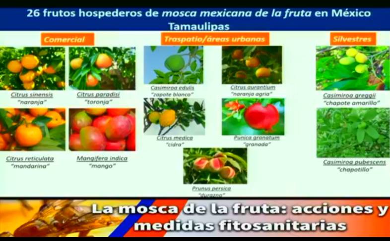 Comentó que en México existen alrededor de 26 frutos hospederos de mosca mexicana, que están contenidos dentro de la Norma Oficial, tras referir que en Tamaulipas, tiene como hospederos, la naranja, la mandarina, el mango, entre otros.