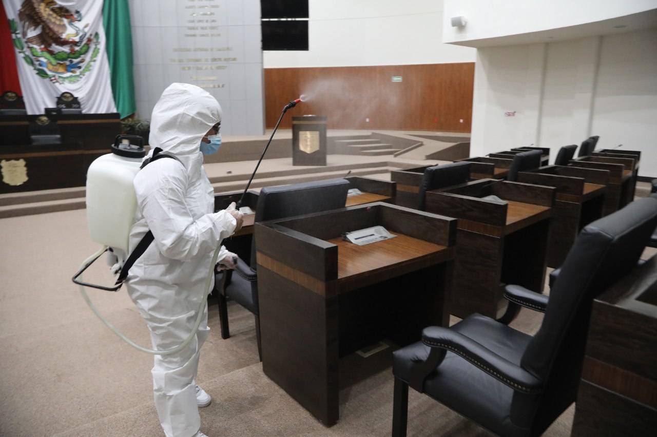 Para reforzar las acciones de prevención del COVID-19, se realizó una jornada de desinfección en las diferentes áreas del Congreso del Estado, a fin de evitar la propagación de este virus.