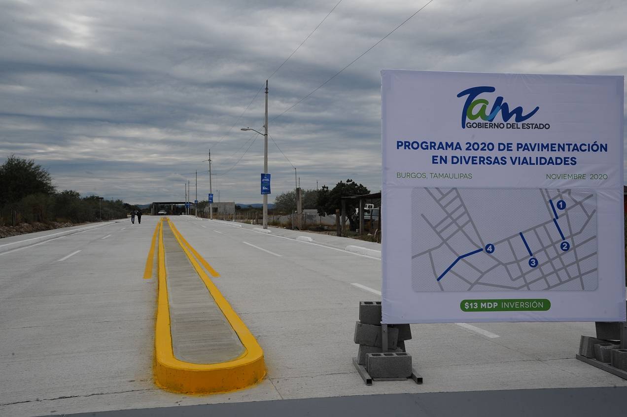 También inauguró 4 calles como parte del Programa de Pavimentación de Vialidades 2020, en el que el Gobierno de Tamaulipas invierte $13 millones de pesos para mejorar la imagen urbana de la comunidad.