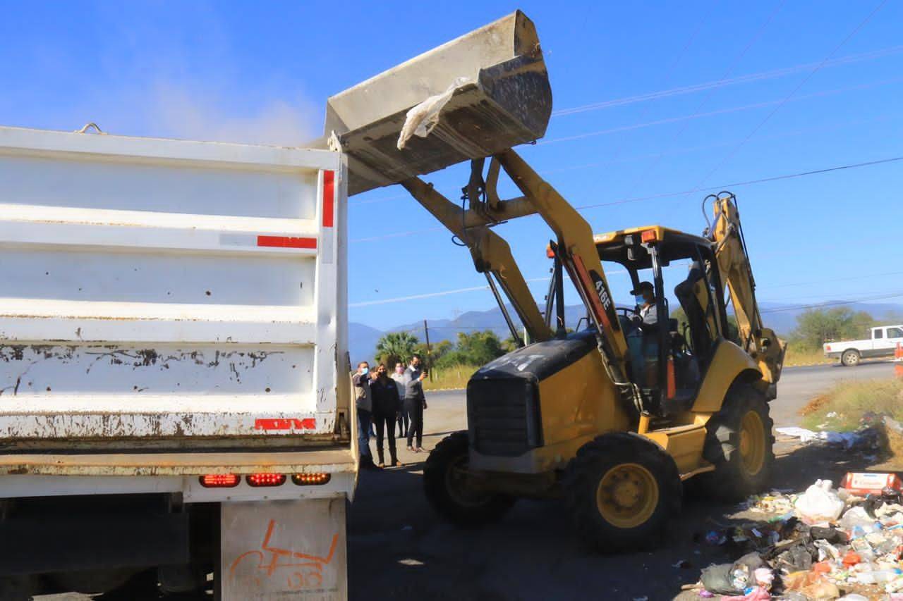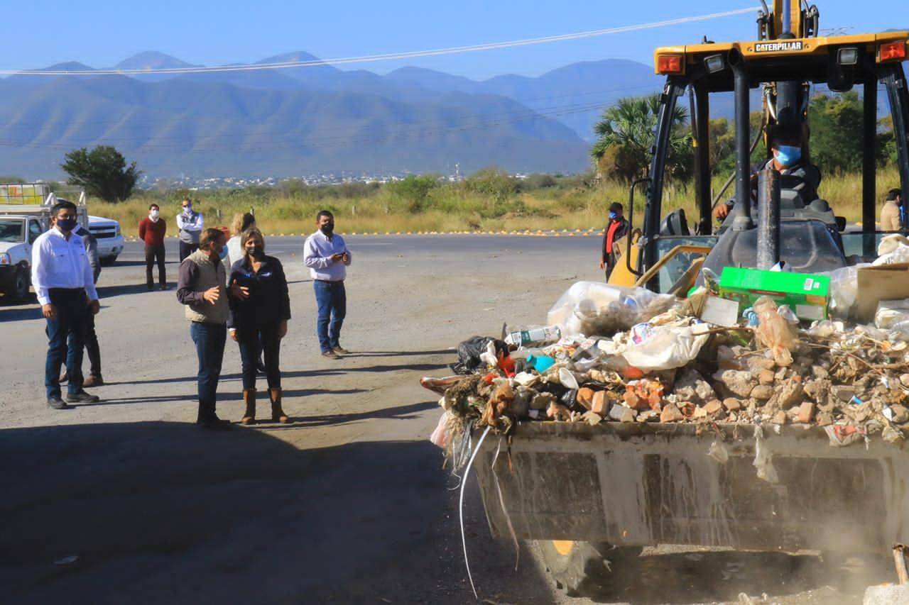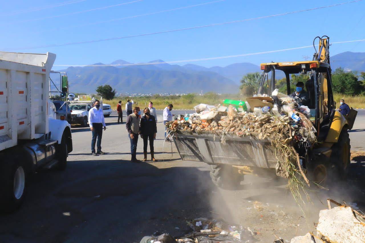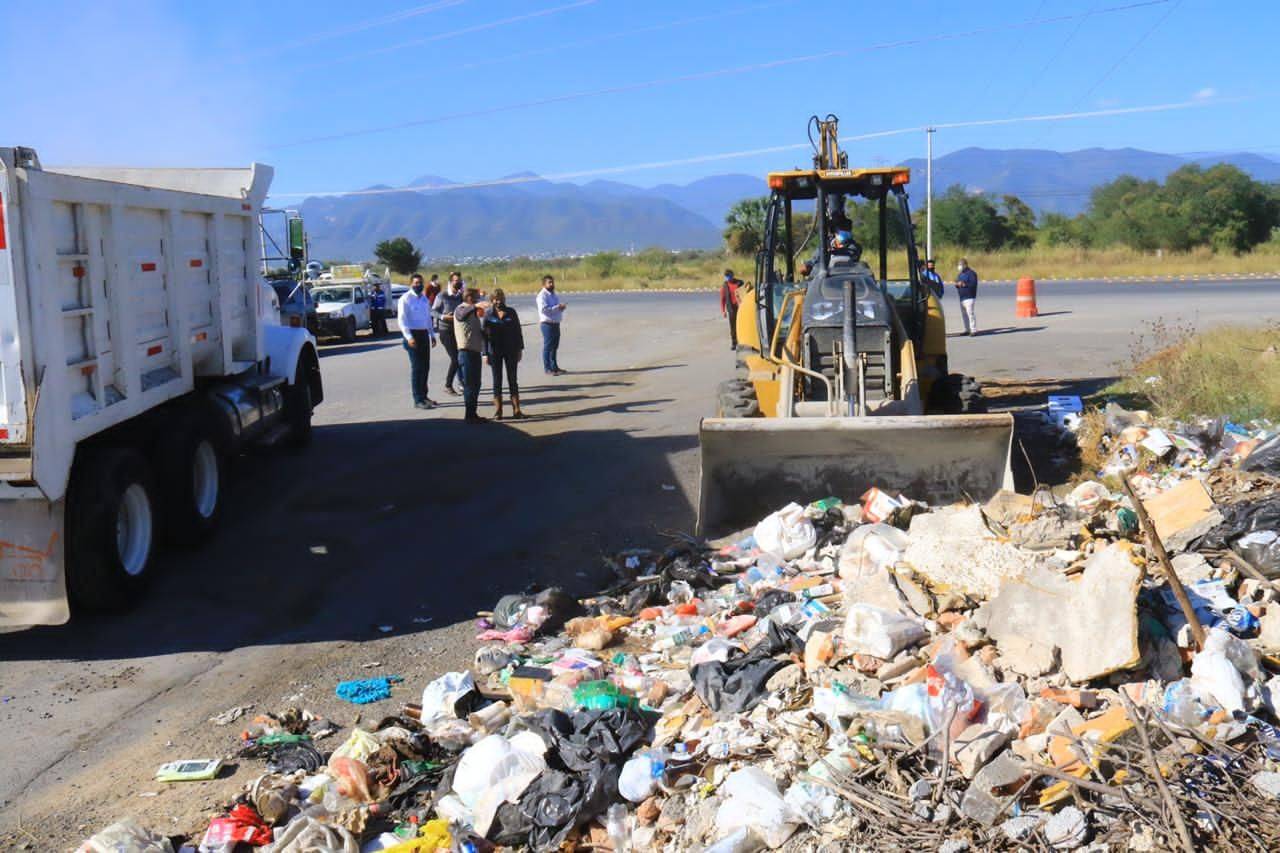 La alcaldesa de Victoria y el Director de Limpieza y Conservación de Espacios Públicos, Francisco Ramos Crespo, atendieron el reporte ciudadano sobre la existencia de un basurero clandestino de grandes dimensiones detectado a un costado de la carretera Victoria-Monterrey.