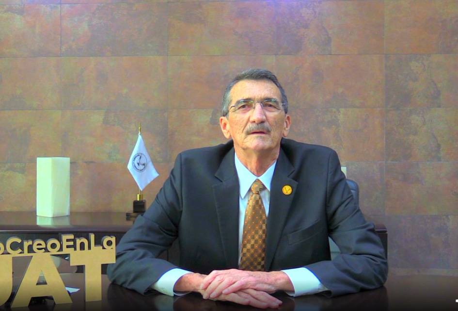 En el evento desarrollado en la modalidad virtual, el Ing. Suárez Fernández expresó en un video mensaje su felicitación a los alumnos egresados de las Licenciaturas de Derecho y Ciencias de la Comunicación.