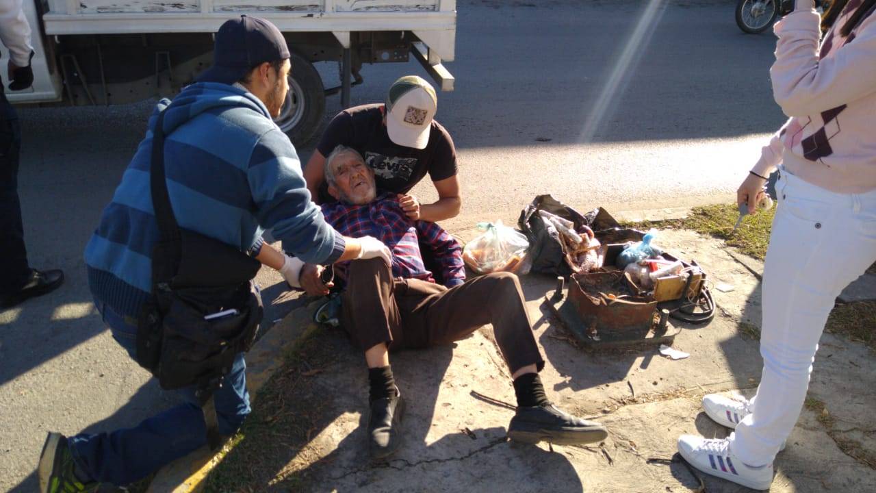 Una persona de la tercera edad que se dedica a vender dulces en la vía pública terminó hospitalizado después de ser arrollado en el 9 bulevar Adolfo López Mateos por un motociclista que se dio a la fuga.