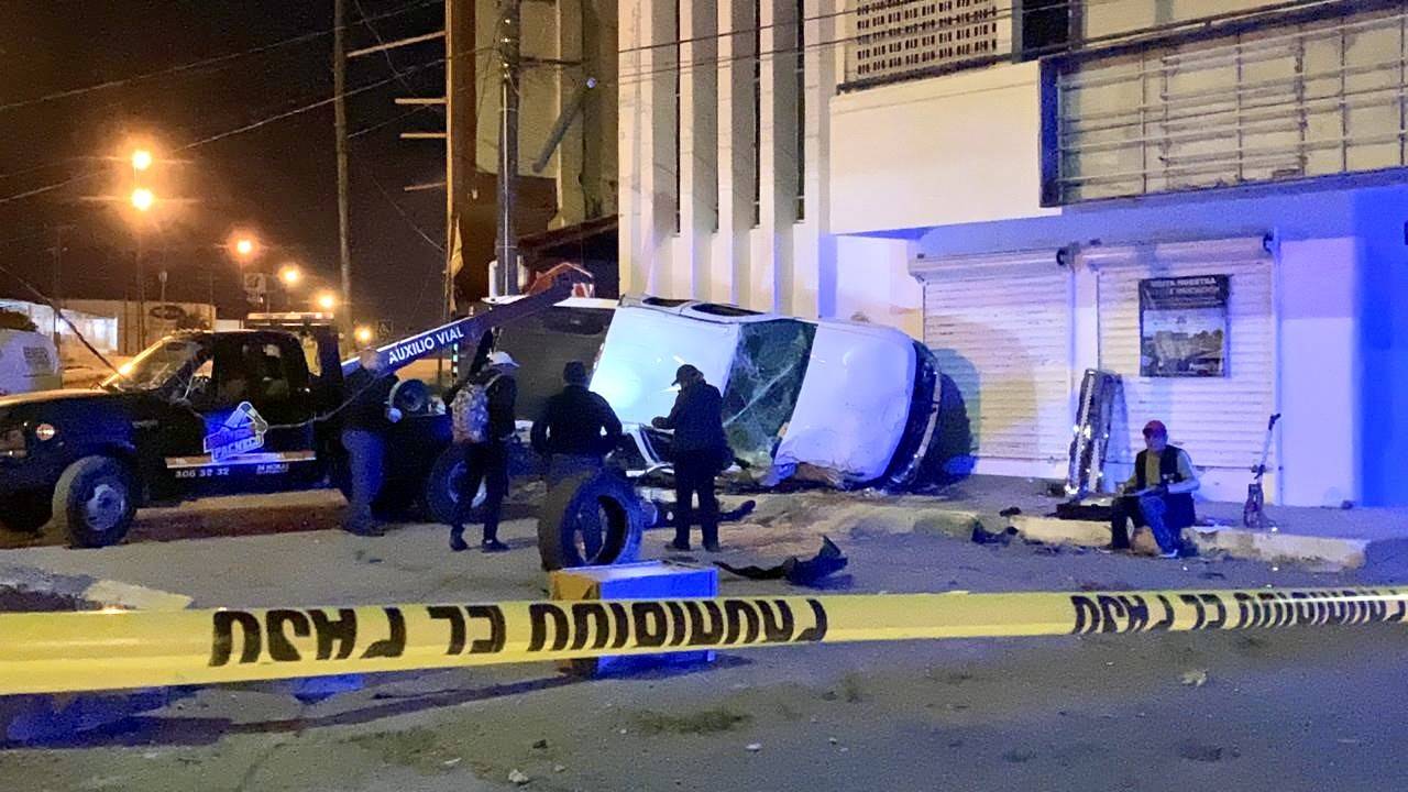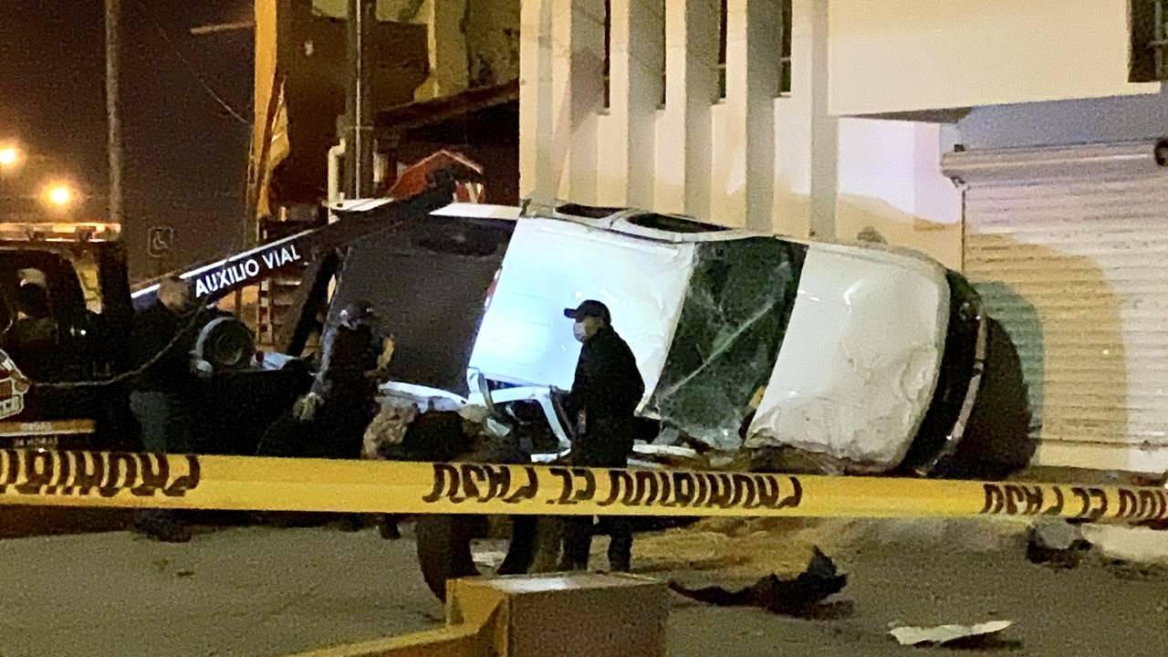 Después de dar varias volteretas, la camioneta quedó "recargada" por un costado sobre un inmueble que se ubica en el crucero del Cero Carrera.