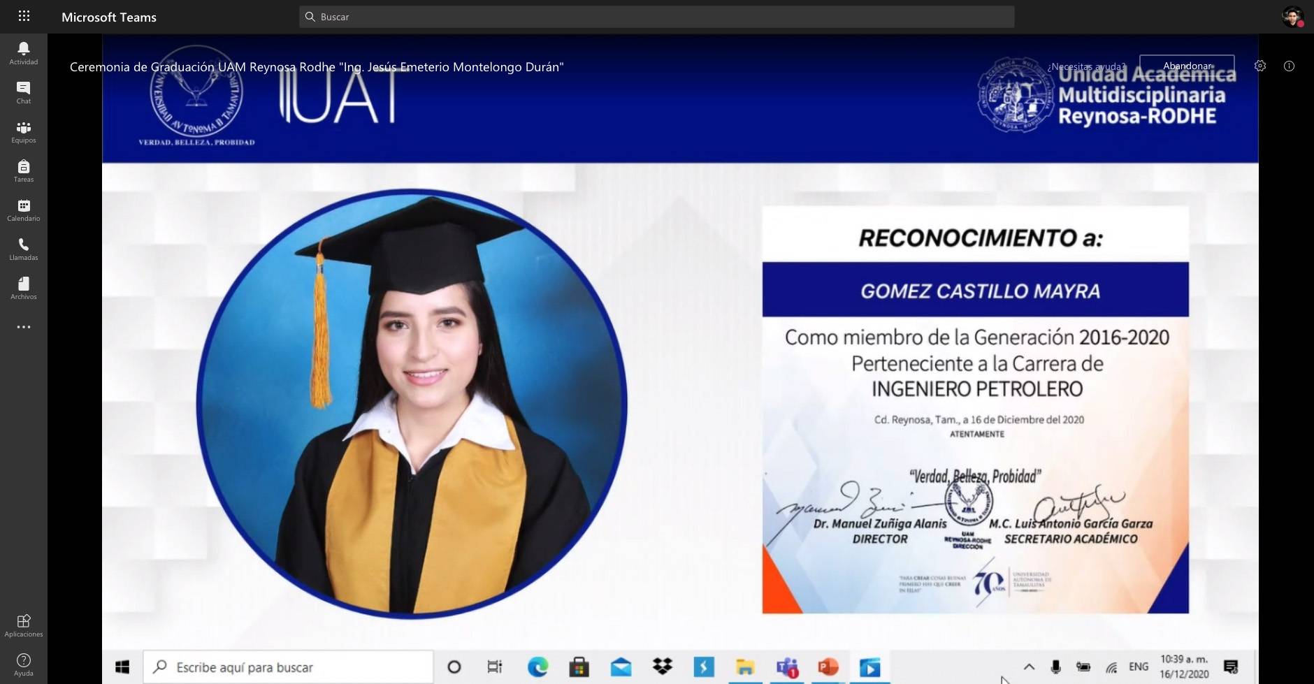 Cabe señalar, que en la ceremonia se entregaron reconocimientos a los estudiantes con los promedios más altos, así como al profesor Ing. Jesús Emeterio Montelongo Durán, por su trayectoria y por darle nombre a la generación 2016-2020 de la Unidad Académica Multidisciplinaria Reynosa-Rodhe.