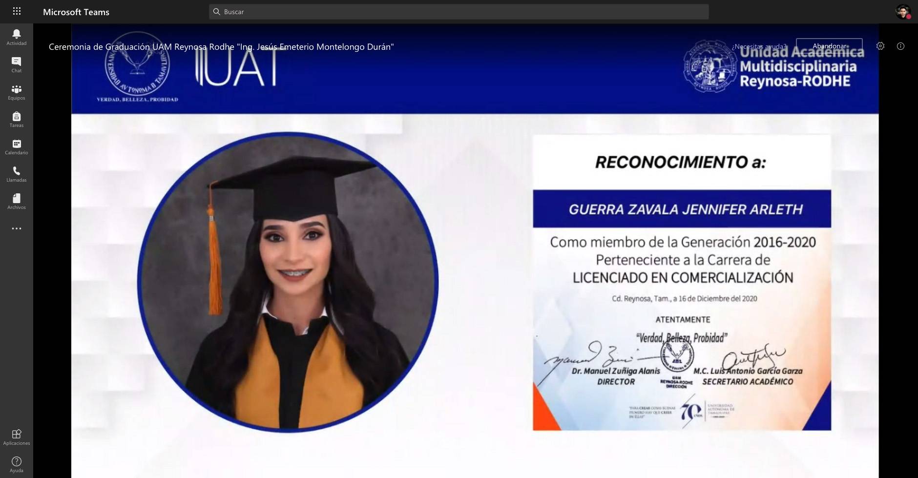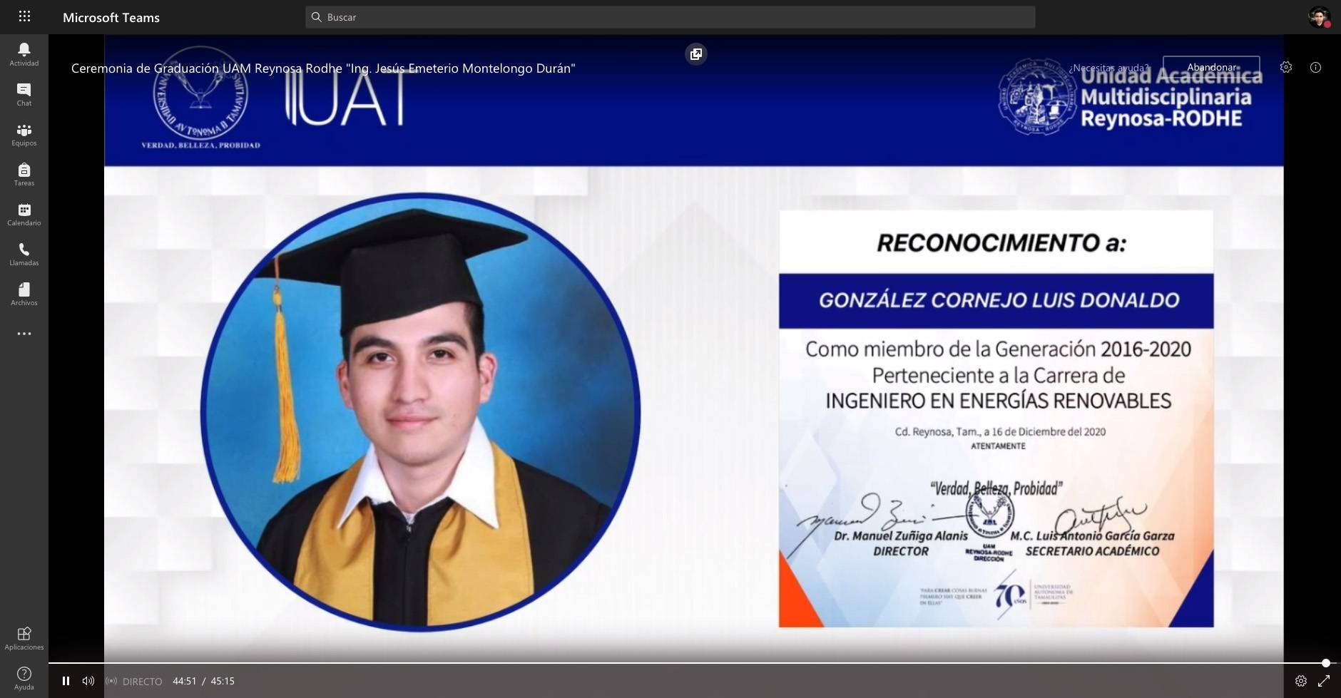 El Rector de la Universidad Autónoma de Tamaulipas (UAT), Ing. José Andrés Suárez Fernández, presidió de manera virtual la ceremonia de graduación de la Unidad Académica Multidisciplinaria Reynosa Rodhe (UAMRR), reconociendo el esfuerzo de maestros y estudiantes para adaptarse a un proceso de enseñanza-aprendizaje diferente debido a la pandemia COVID-19.