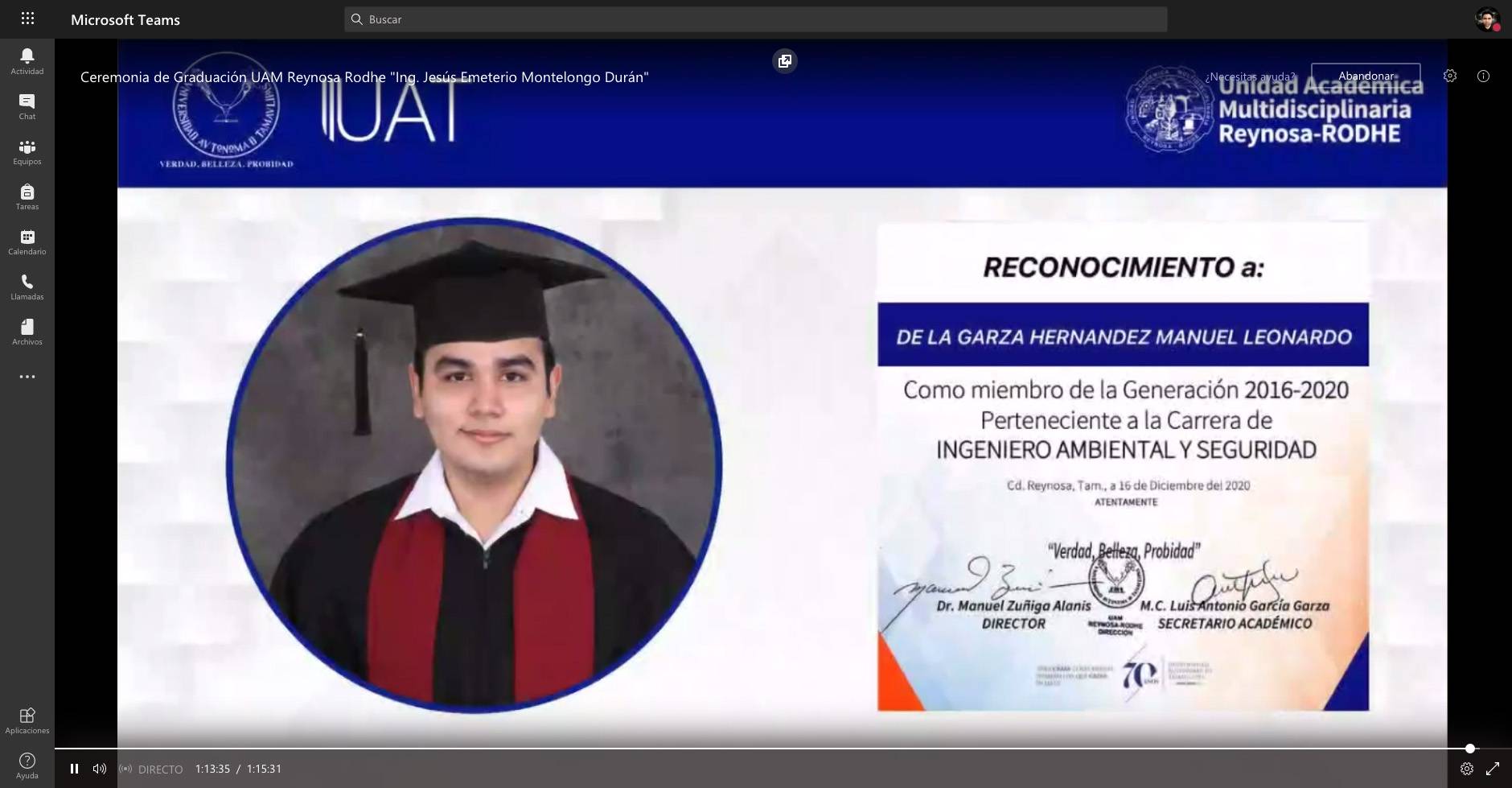 En el evento transmitido en la plataforma TEAMS, estuvo presente el Director de la UAMRR, Dr. Manuel Zúñiga Alanís; así como el Mtro. Luis Antonio García Garza, Secretario Académico; la Mtra. María de Lourdes Castillo Carrillo, Secretaria Administrativa y la Mtra. Lucía Terán Gutiérrez, Secretaria Técnica.
