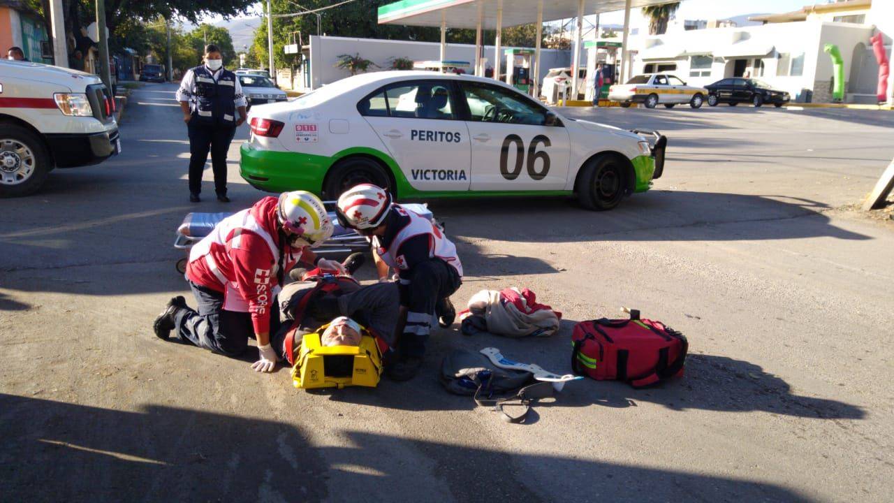 Después de ser valorado se determinó trasladar al motociclista a un hospital al presentar graves lesiones.