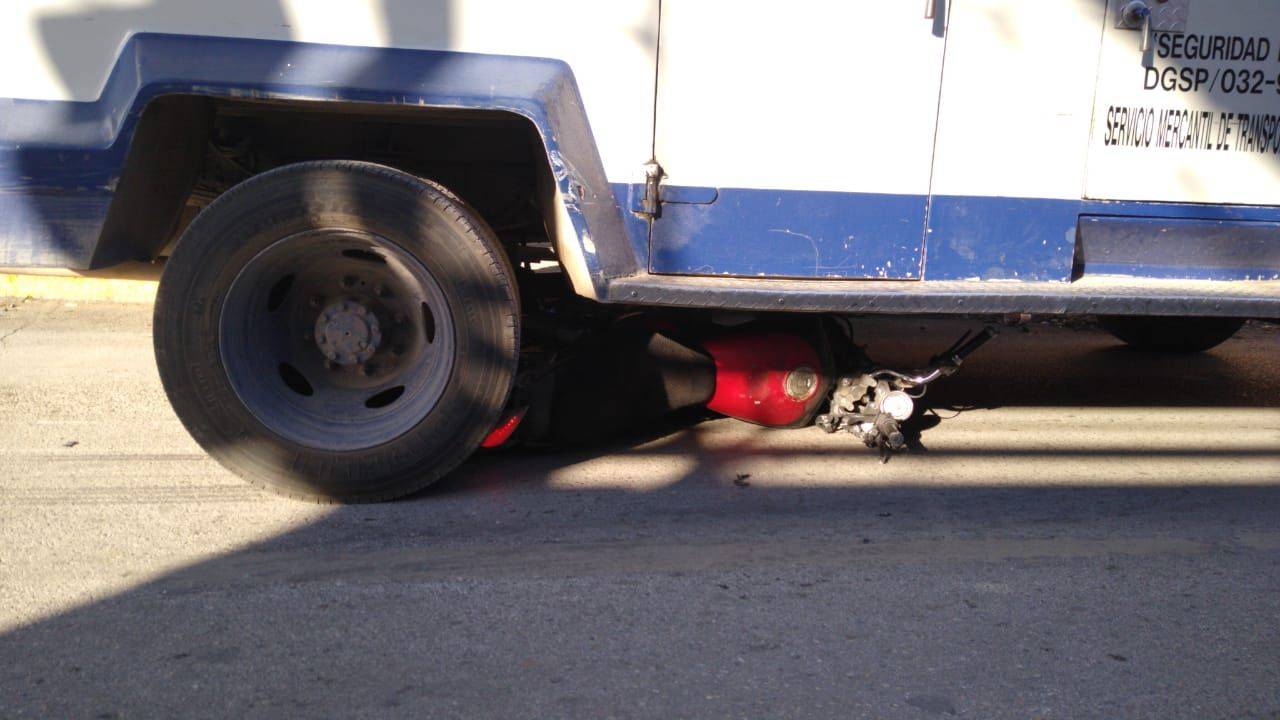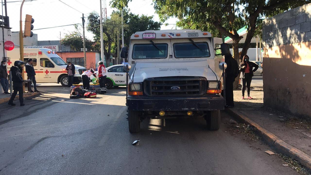 Al llegar al crucero con la calle Felipe Berriozábal el camión blindado arrolló al motociclista que circulaba en sentido de oriente a poniente.