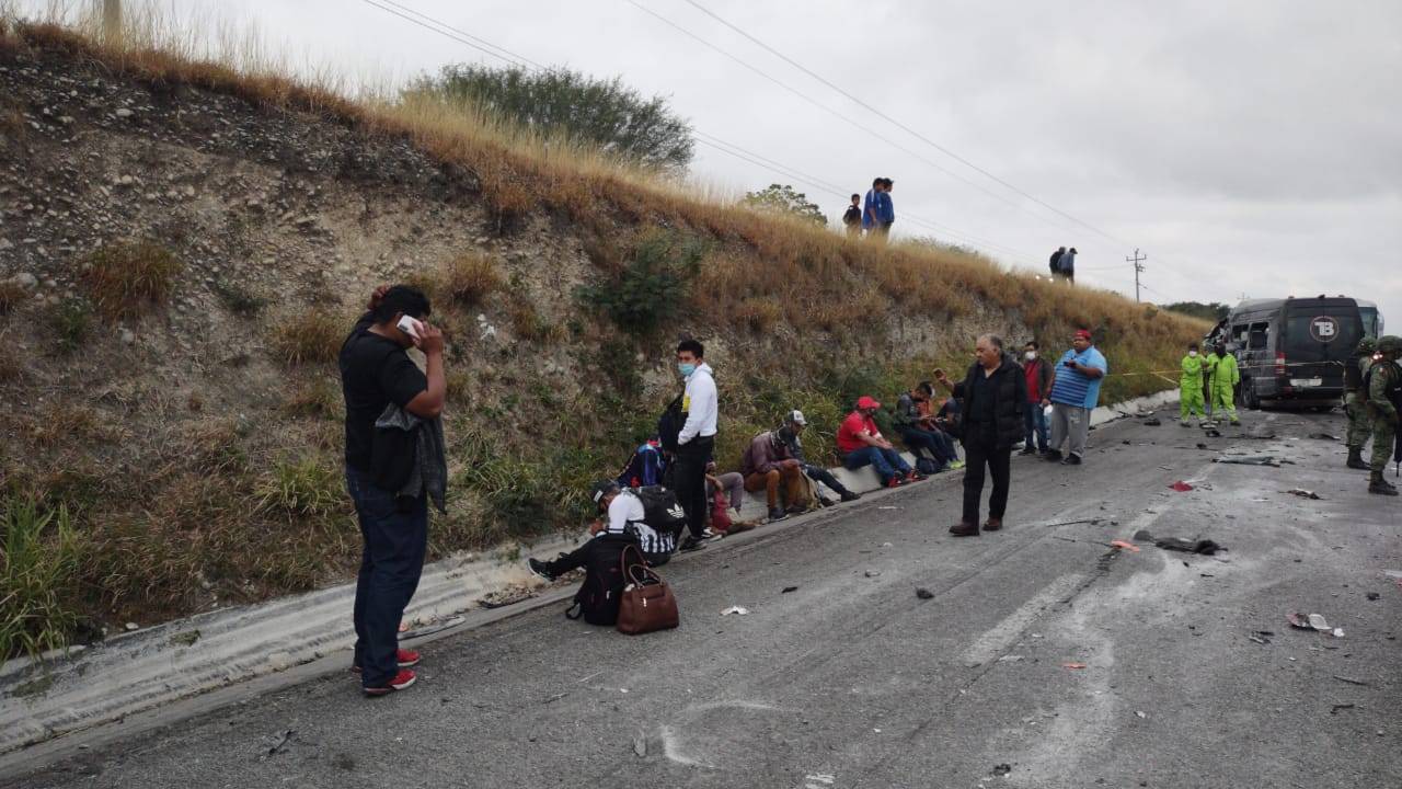 En el lugar del accidente quedaron 16 lesionados estables, siendo trasladados cuatro personas al municipio de Hidalgo.