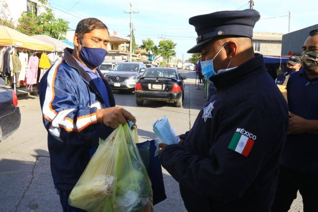 Autoridades estatales y municipales verificaron que comerciantes y transeúntes respeten las medidas de seguridad implementadas por el Comité Estatal de Seguridad en Salud como el uso obligatorio del cubrebocas, desinfección con gel antibacterial y se respete en todo lo posible la sana distancia.