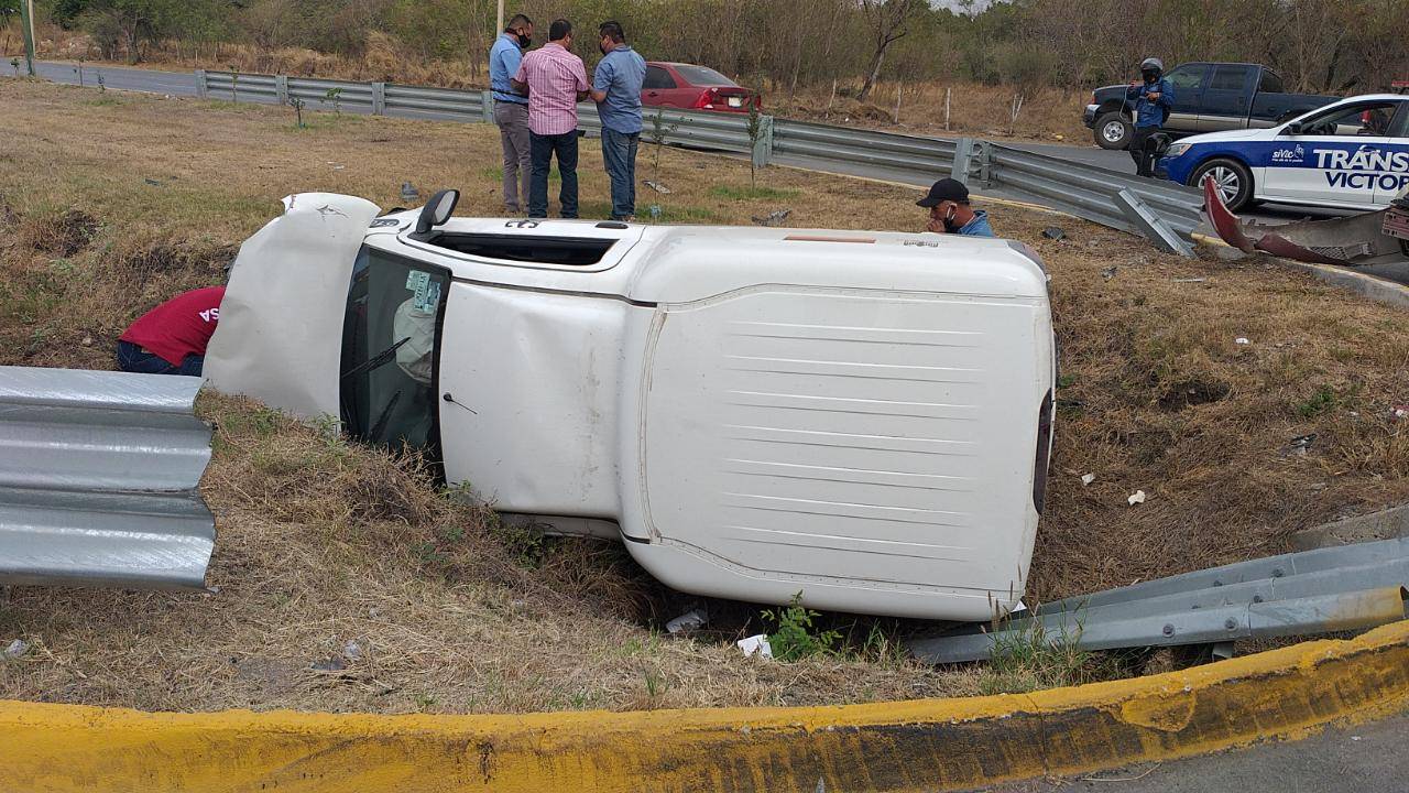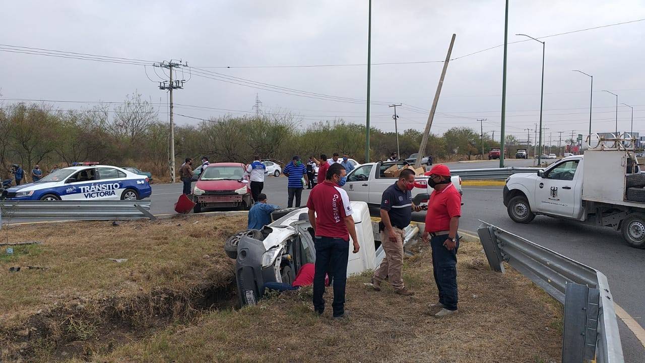 El aparatoso accidente se registró esta mañana en el Libramiento Naciones Unidas y salida a Matamoros.