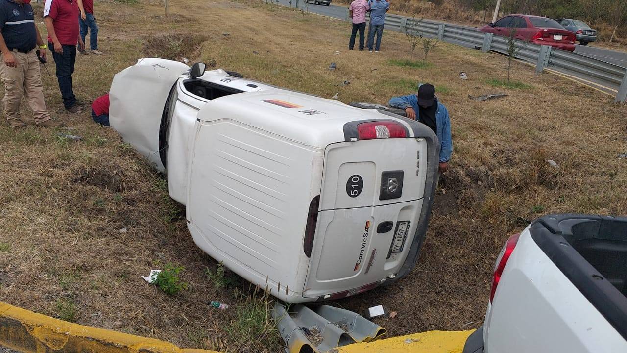 Tras ser impactada la camioneta se proyectó contra la valla metálica del camellón central divisor de carriles y terminó por volcar cayendo en una zanja.