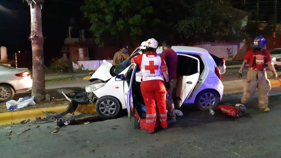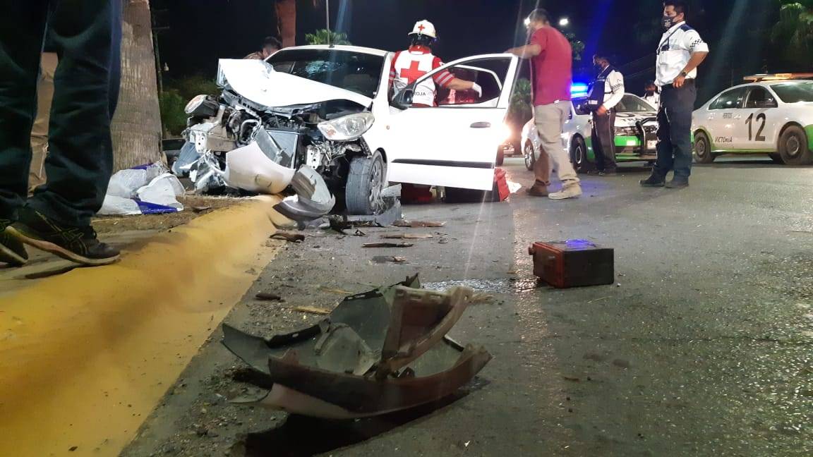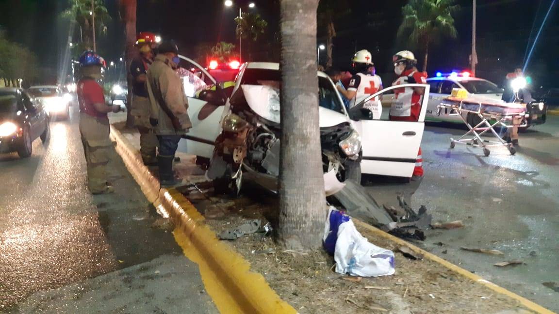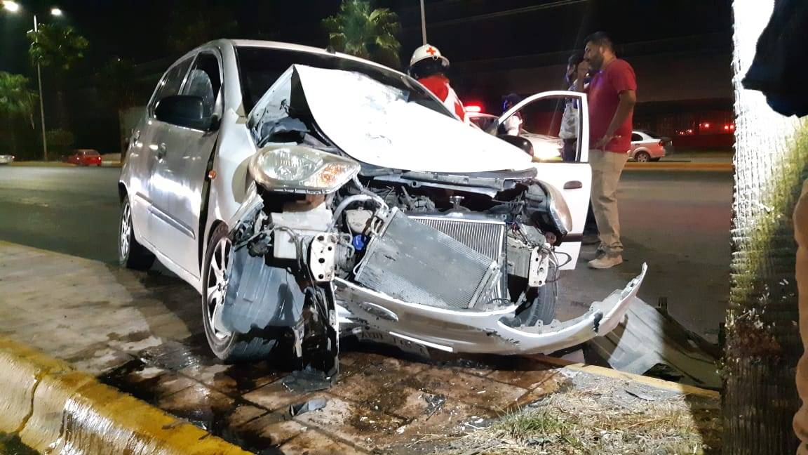 Al circular a la altura de la colonia Mariano Matamoros la conductora del vehículo i10 pierde el control del volante y desvía su trayectoria hacia su lado derecho terminando por impactarse de manera frontal contra una palmera.