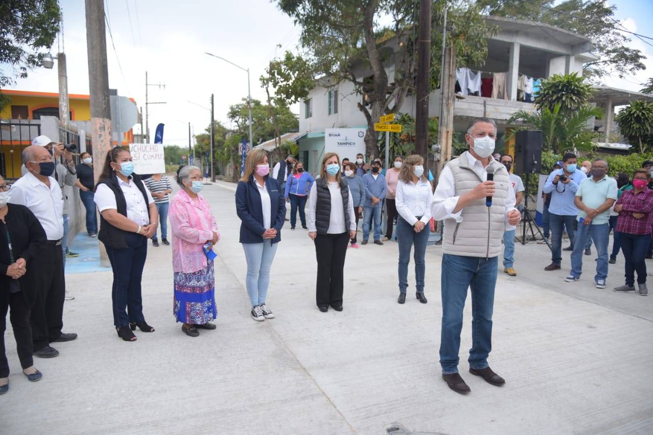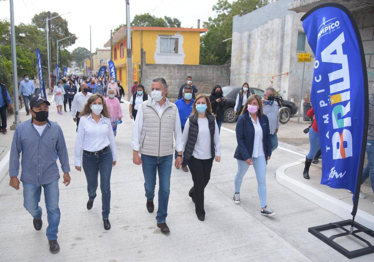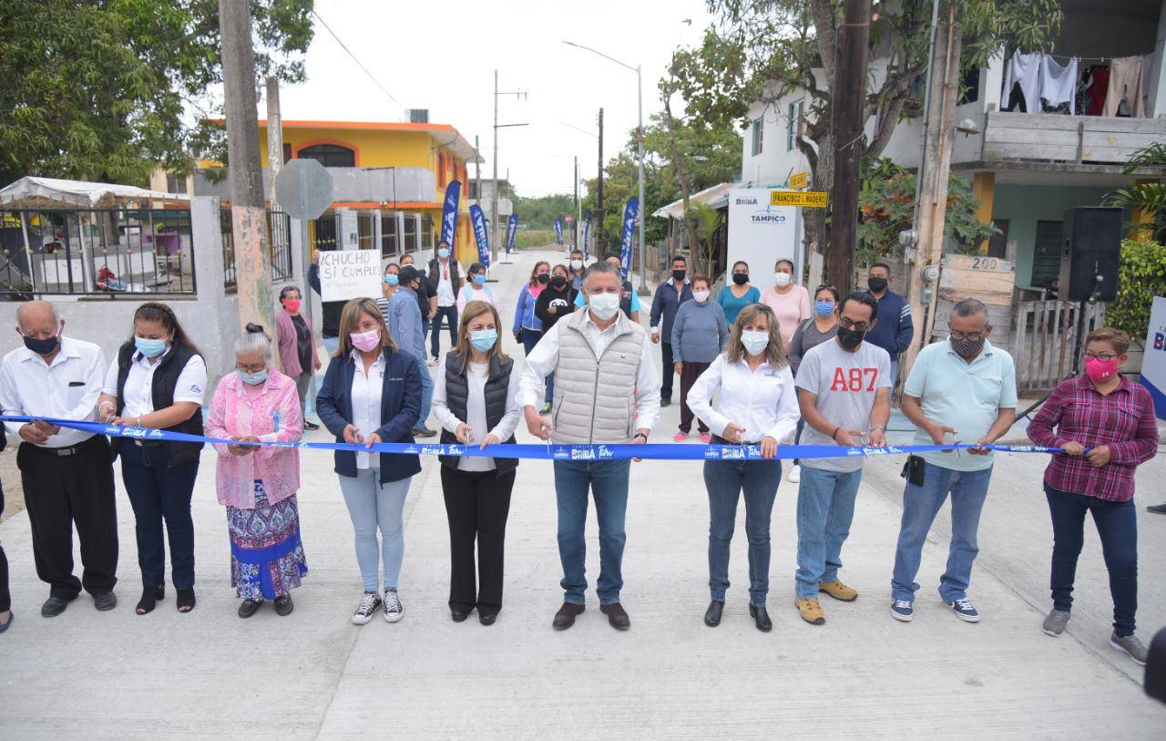 El Presidente municipal Chucho Nader y su esposa, Aída Féres de Nader, Presidenta del Sistema DIF Tampico inauguraron este lunes la pavimentación a base de concreto hidráulico de la calle 5 de Junio en la colonia La Paz, cumpliendo con ello, el compromiso contraído con los vecinos de este sector.
