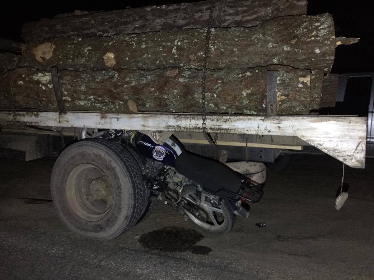 Un joven de 24 años de edad perdió la vida de manera instantánea la noche del día de ayer al estrellar su motocicleta contra las llantas traseras de un camión tipo plataforma.