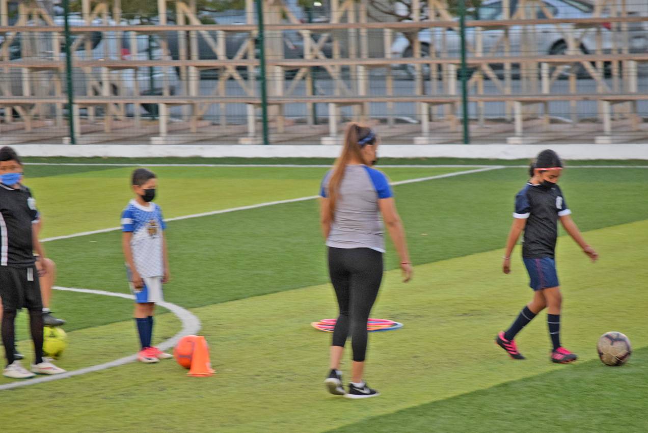 Los entrenamientos de estos jovencitos por la tarde y la encargada es la reconocida entrenadora y futbolista Génesis García Abrego y otra de sus compañeras.