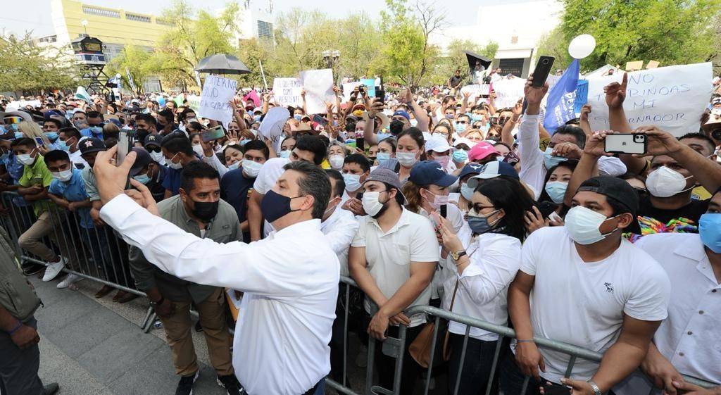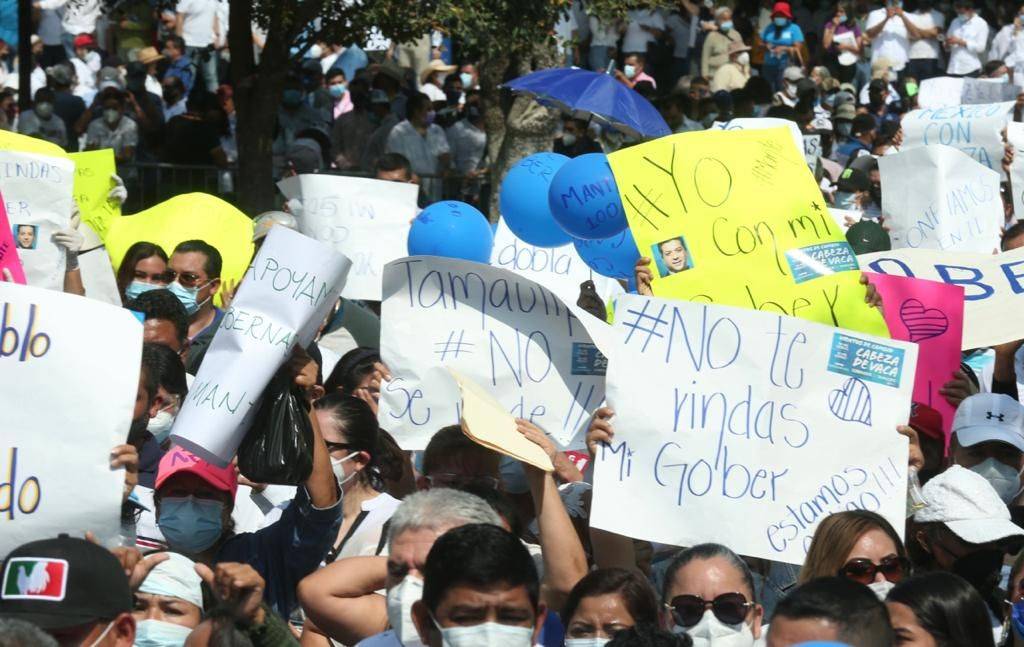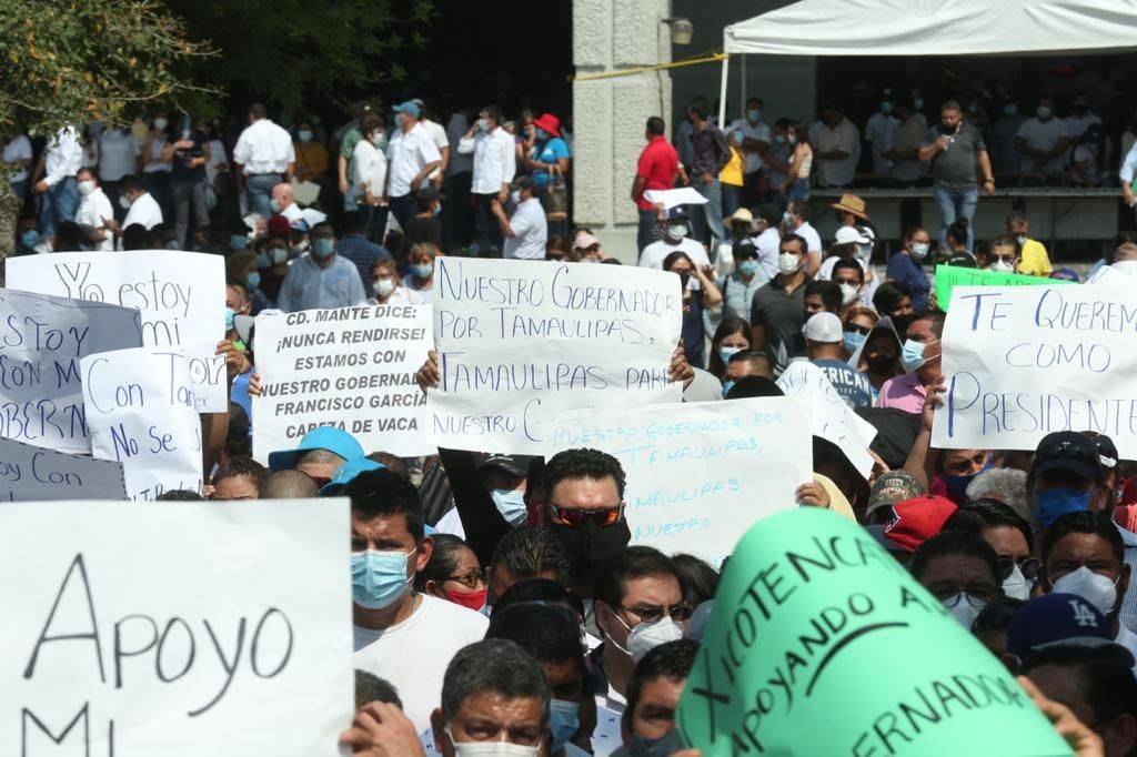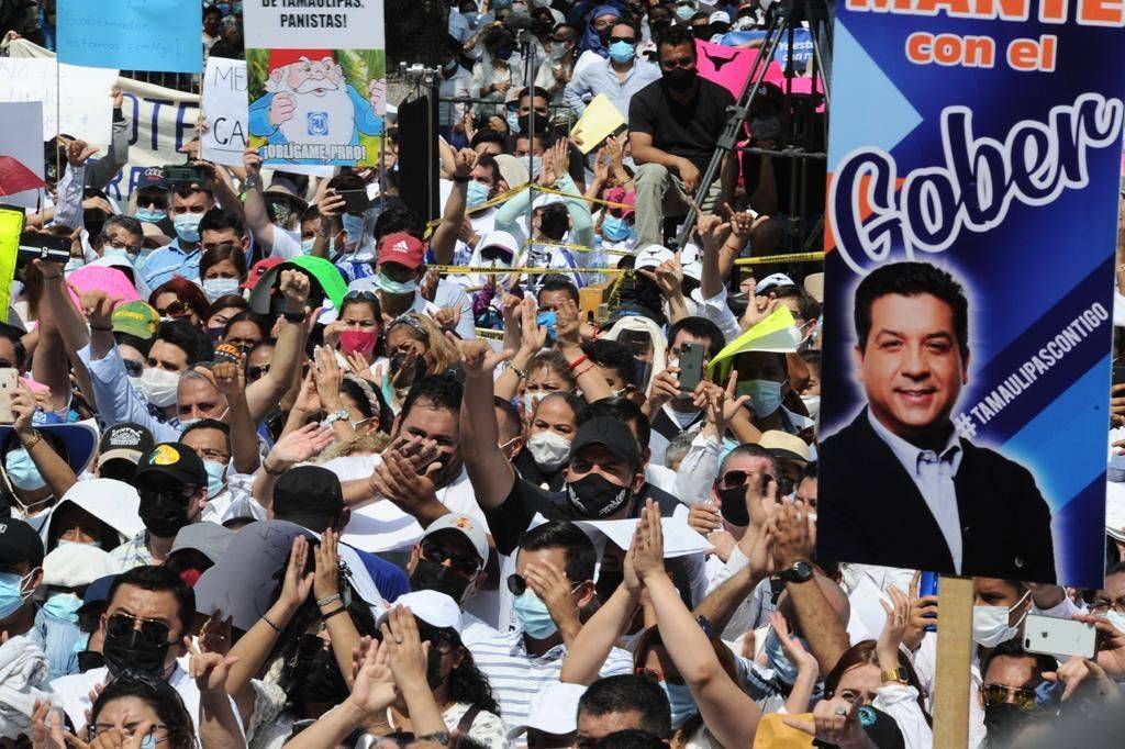 Miles ciudadanos de diversos municipios de la zona centro se sumaron a la marcha la cual partió del estadio Marte R. Gómez hasta el Palacio de Gobierno a ellos dijo: “el Gobierno Federal y su partido Morena a través de mentiras, engaños, descalificaciones ilegalidades, fabricaciones pretenden quitar a su gobernador. No se va a permitir. Aquí hay un gobernador y fue puesto por el pueblo de Tamaulipas”.