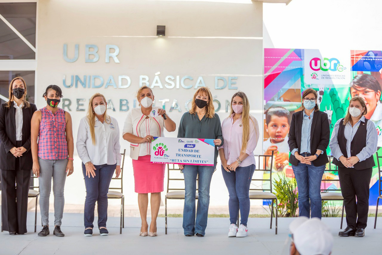 Altamira, Tamaulipas.- La Presidenta del Sistema DIF Tamaulipas, Mariana Gómez de García Cabeza de Vaca, visitó el municipio de Altamira para inaugurar la tercera Unidad Básica de Rehabilitación creada bajo el Modelo Tam, que tuvo una inversión de más de 10 millones de pesos en su construcción y equipamiento, también les hizo entrega de una nueva unidad de transporte adaptado del programa “Sin Límites”.