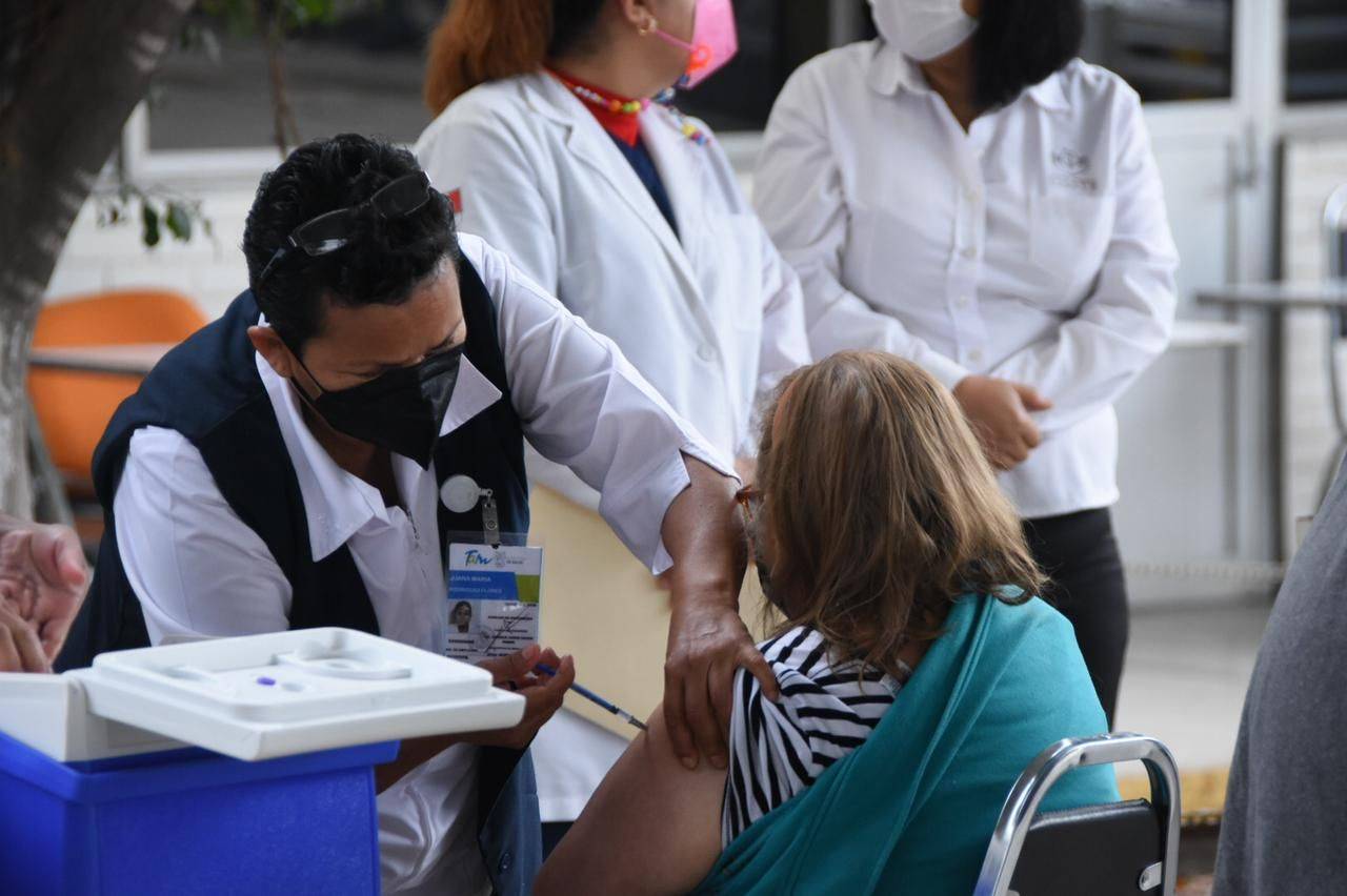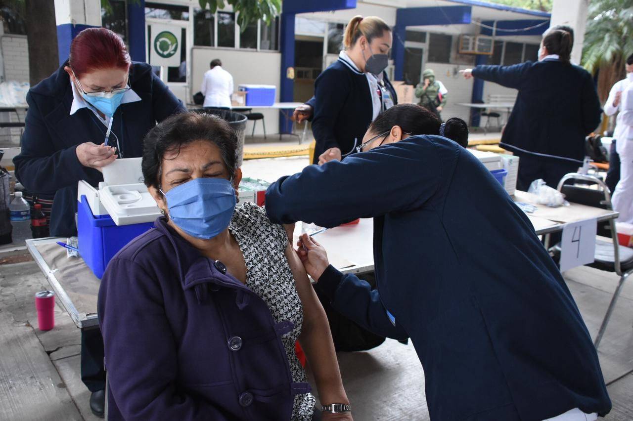 Largas filas se comenzaron a reflejar por toda la orilla de la barda perimetral, mientras que las vacunas llegaron trasladadas por personal de Salud y resguardadas por elementos de la Guardia Nacional.