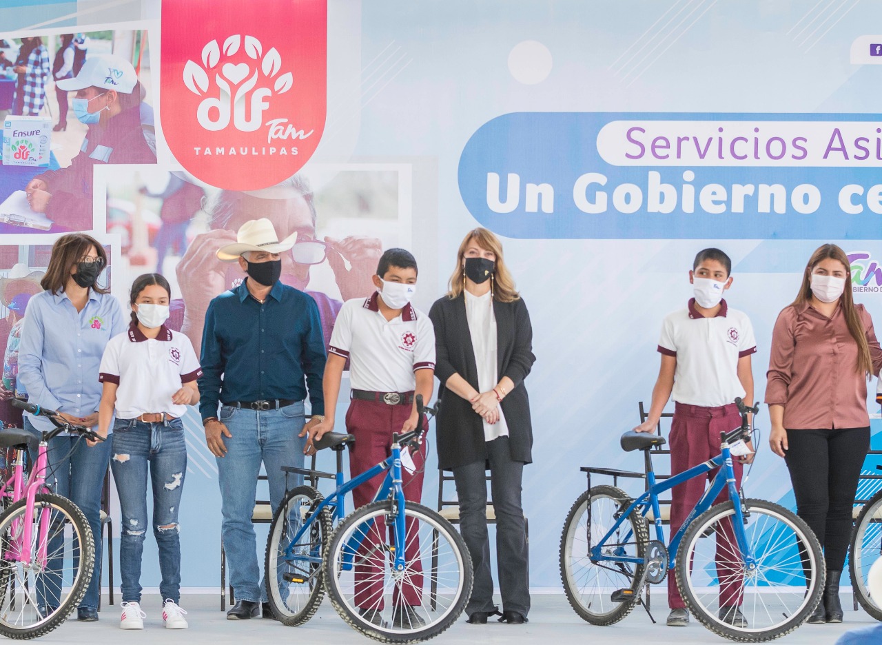 Ant. Morelos, Tamaulipas.- Con la entrega de aparatos funcionales para personas con discapacidad en condiciones de vulnerabilidad, microcréditos para emprendedores, equipamiento para comedores del programa Desayuna Bien, bicicletas del programa Ayúdame a Llegar para estudiantes que tienen que caminar largas distancias para llegar a su plantel educativo, entre otros apoyos, se llevó a cabo la brigada asistencial del Sistema DIF Tamaulipas Un Gobierno Cerca de Ti en el ejido El Sauz de Antiguo Morelos.
