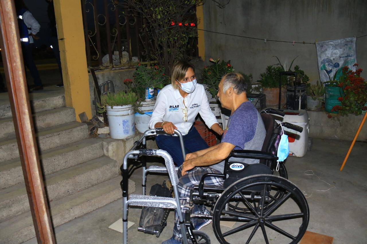 En la colonia Reforma la señora Amelia Alonso Arredondo dijo estar agradecida por la calidad humana y apoyos que Pilar Gómez le entregó a su esposo, quien sufre de una discapacidad física y por lo mismo ya no puede trabajar, recibió beneficios como aparatos funcionales y pañales.