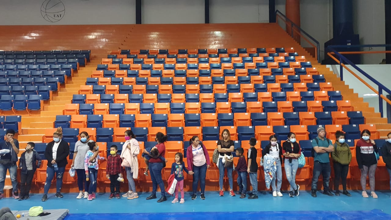 Reynosa, Tamaulipas.- Más de 65 personas entre niñas, niños, adolescentes y adultos migrantes que dormían en la vía pública, fueron trasladados a las instalaciones del Gimnasio de la UAT, donde en forma coordinada el Gobierno del Estado, el Instituto Nacional de Migración, coordinados por el DIF Tamaulipas se les brindara la atención necesaria a las familias de migrantes.