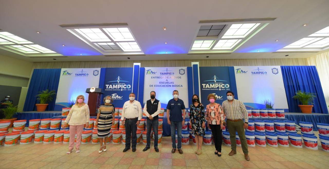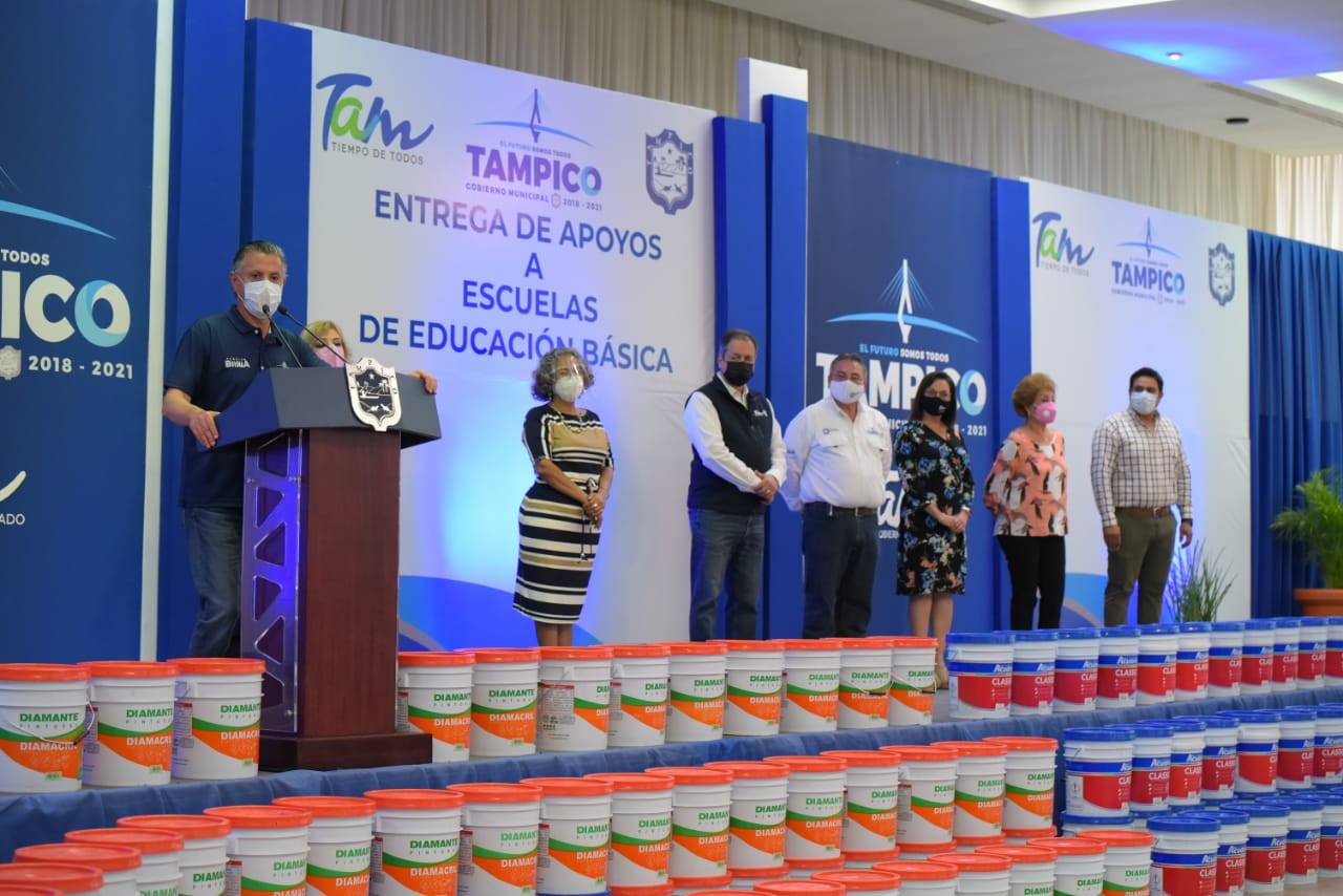 "Hoy estamos recibiendo del Gobernador del Estado Francisco García Cabeza de Vaca este material que será de mucha utilidad para seguir conservando la imagen y el buen estado de las diferentes escuelas de Tampico. Durante este año de pandemia hemos trabajado muy de cerca con todas y todos los maestros, con el fin de atender sus principales necesidades y así vamos a seguir, con el mismo compromiso de privilegiar al sector educativo", dijo.
