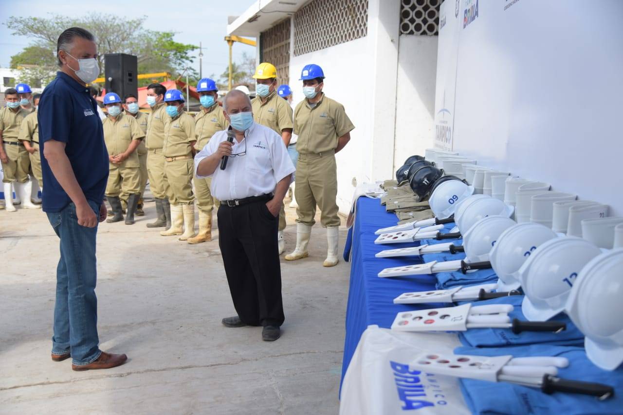 Durante la visita, Nader Nasrallah entregó uniformes, cascos, botas y equipo de trabajo diverso a medio centenar de trabajadores, además de verificar las acciones desarrolladas en el cuarto de lavado de vísceras, donde se instaló un sistema de ventilación, mobiliario, equipo, pisos, recubrimiento en paredes, iluminación y colocación de cortina de aire.