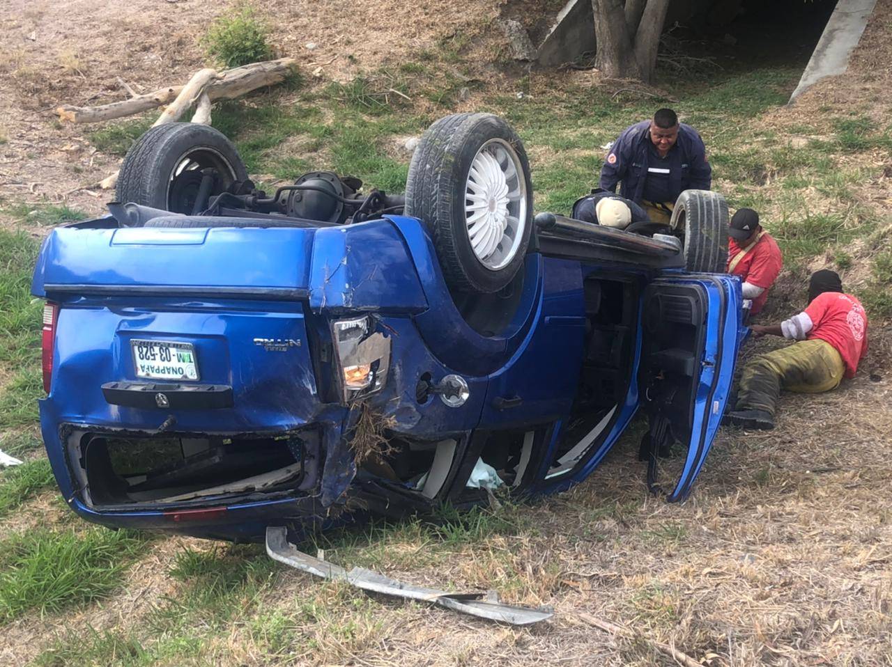 La mujer hacia circular la camioneta Nitro en sentido de poniente a oriente por el Libramiento Naciones Unidas cuando repentinamente "se le nubla la vista", pierde el control y terminó por volcar quedando la unidad con las llantas hacia arriba.