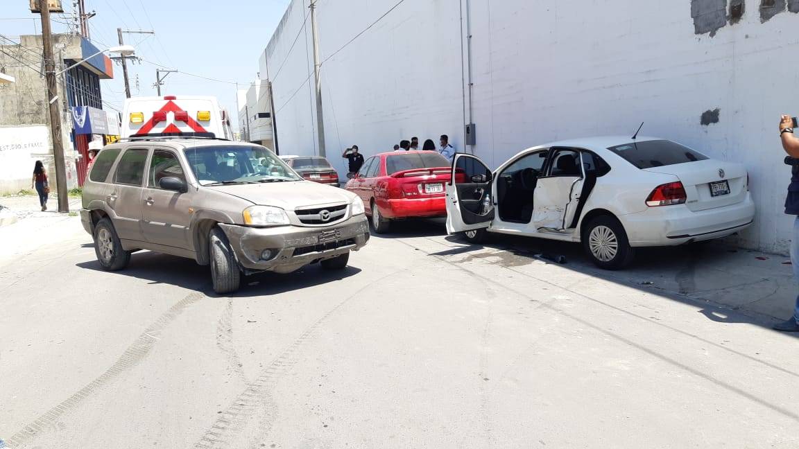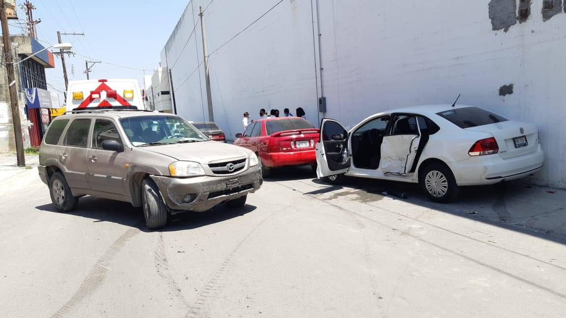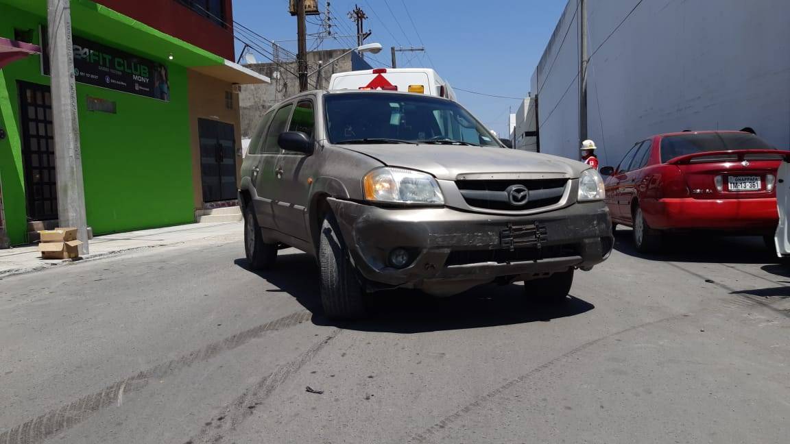 La camioneta Tribute al ser impactada salió proyectada y se estrelló contra el costado de un automóvil marca Volkswagen tipo Vento color blanco que se encontraba estacionado en la calle 10 entre Abasolo y Carrera Torres.