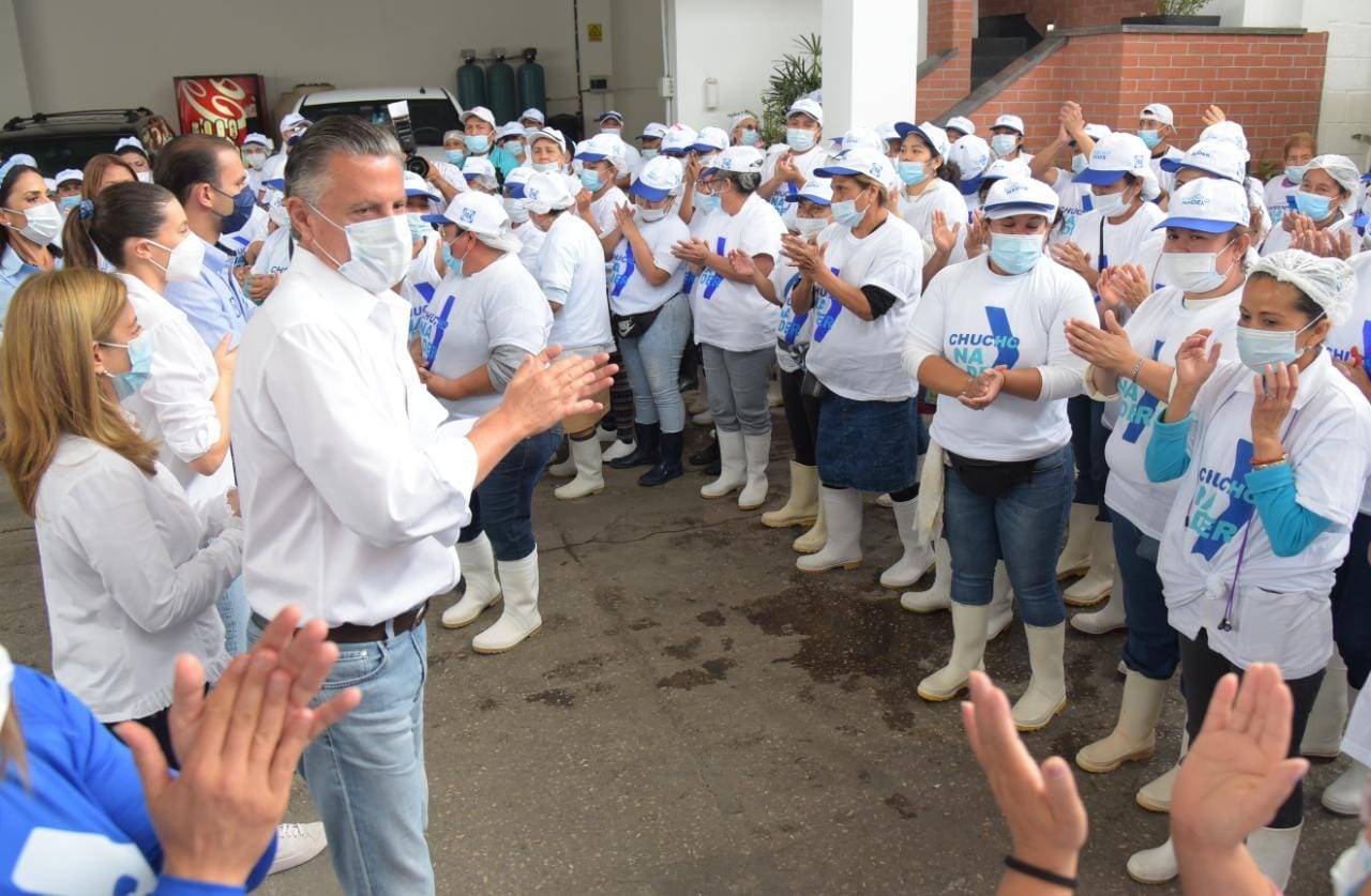 Los candidatos del PAN estuvieron también en la colonia Morelos donde fueron recibidos por las despicadoras de camarón, quienes respaldaron sus propuestas y reiteraron su confianza a Chucho Nader, Rosa González, Nora Gómez y Mon Marón.
