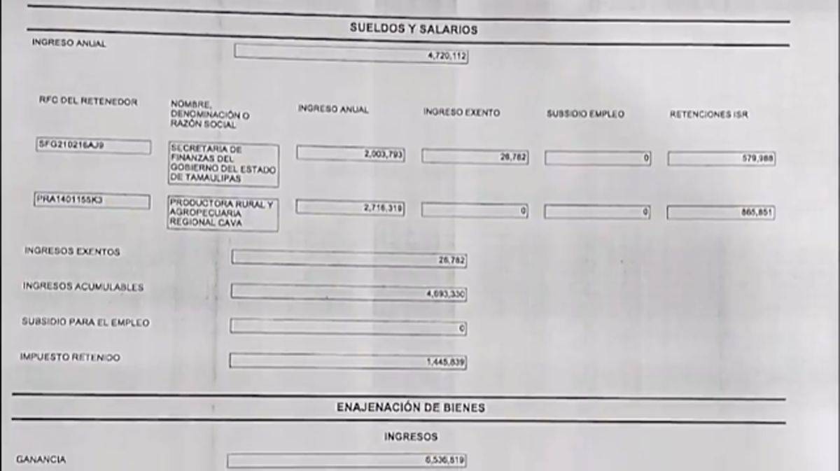 También se presentan las declaraciones fiscales del gobernador Francisco García Cabeza de Vaca y de su esposa Mariana Gómez Leal.