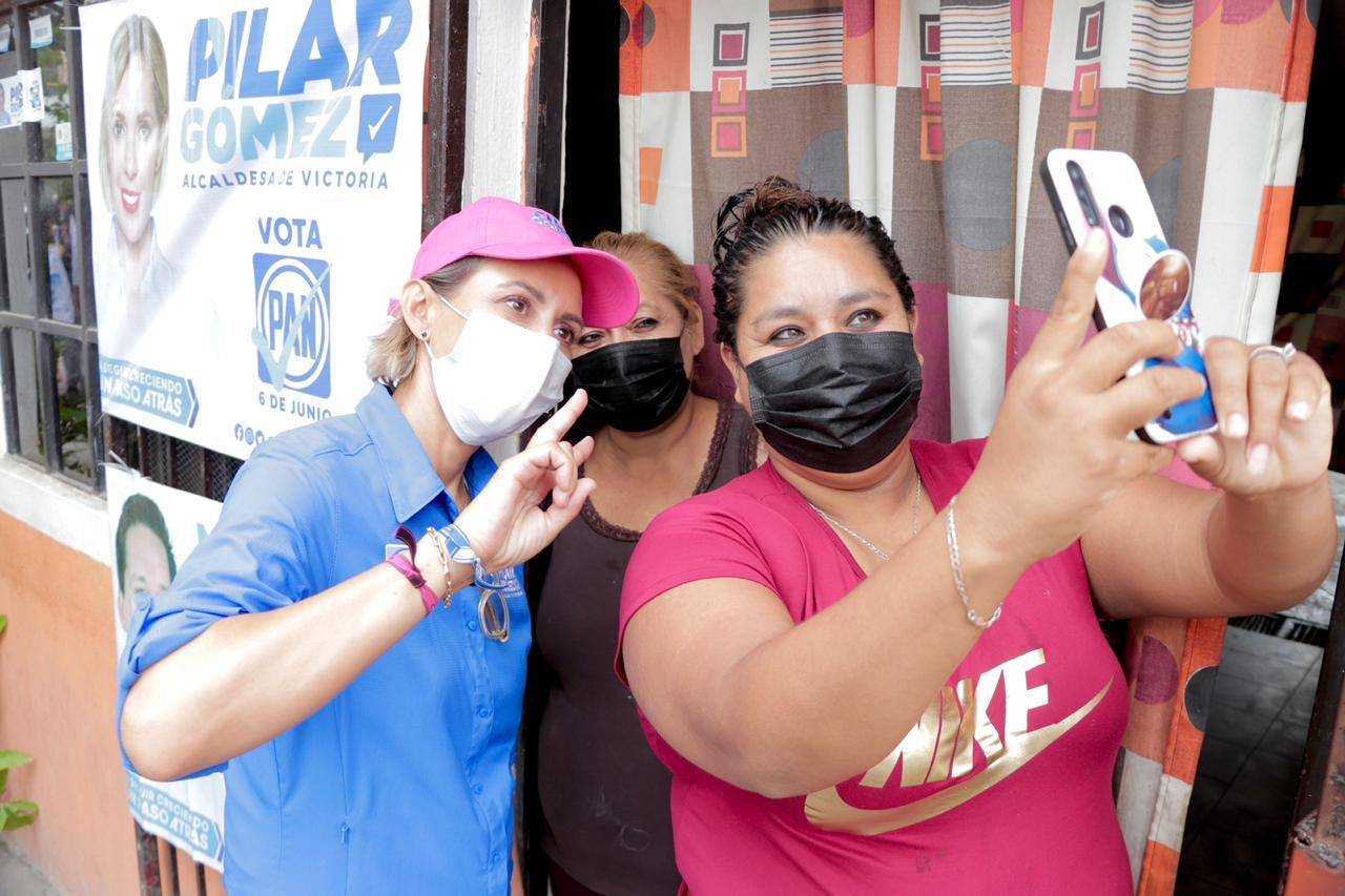 vamos con todo por Victoria”, dijo la Pilar Gómez, quien este jueves visitó la Colonia Obrera y sostuvo reuniones con distintos grupos sociales y productivos del municipio.