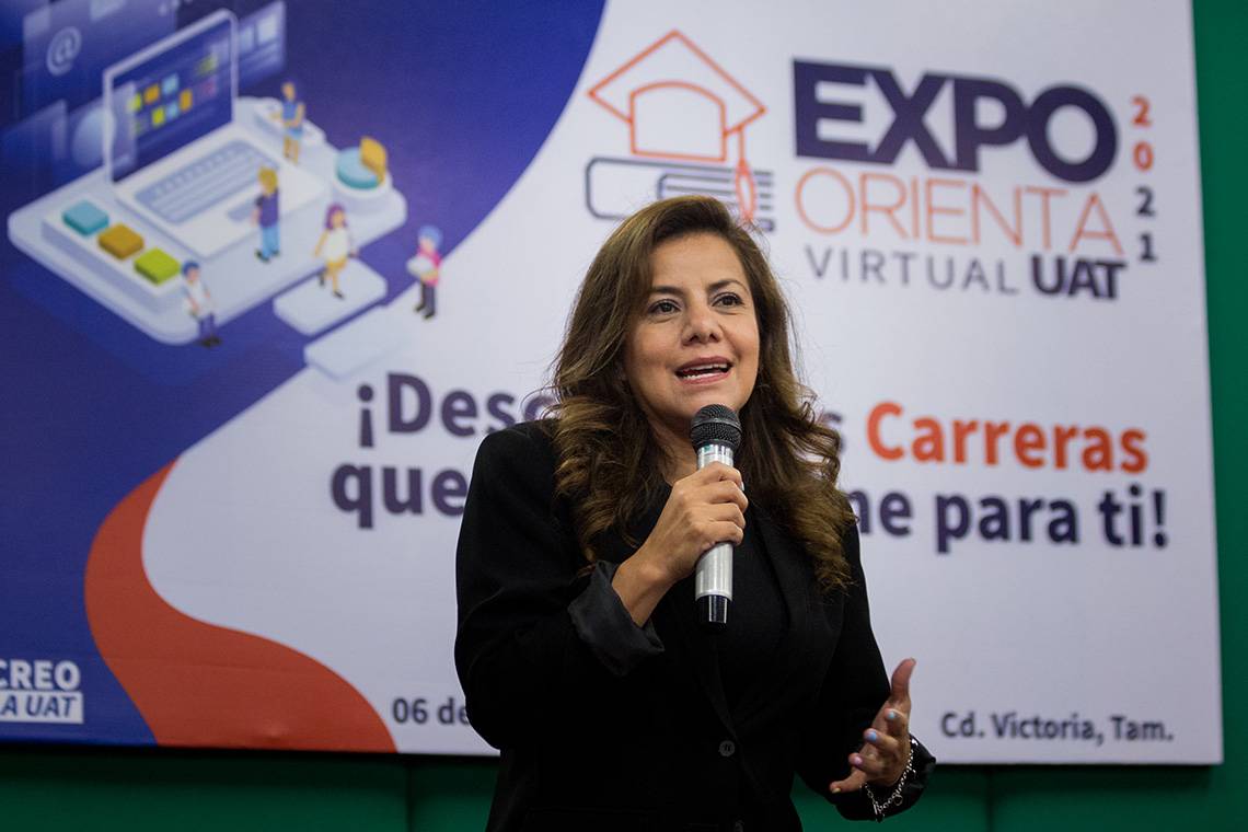 La ponencia se desarrolló de manera presencial en el auditorio del Centro de Excelencia del Campus Victoria, y fue trasmitida a través de las plataformas de Facebook y Microsoft Teams, como parte de la Expo Orienta Virtual UAT 2021 organizada por la Secretaría Académica y la Dirección de Apoyo y Servicios Estudiantiles de esta casa de estudios.