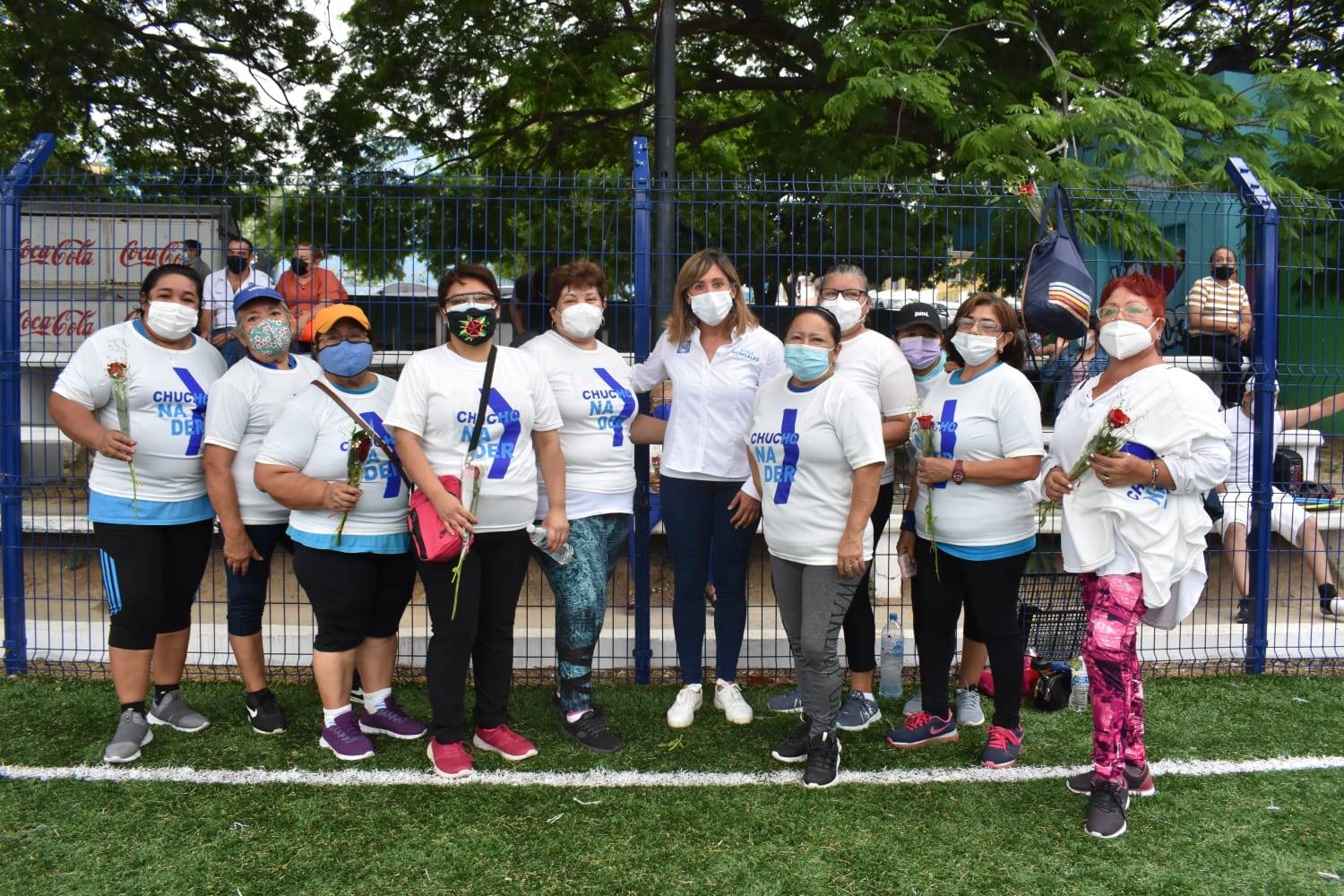 La abanderada del PAN a la diputación federal, cumplió otro día más de campaña, pues éste lunes, acudió como invitada a muy temprana hora a un zumbatón y por la tarde volver a caminar con la población, pero ahora en la colonia Loma Bonita, en compañía del candidato a la alcaldía Chucho Nader y su esposa, Aída Féres de Nader.