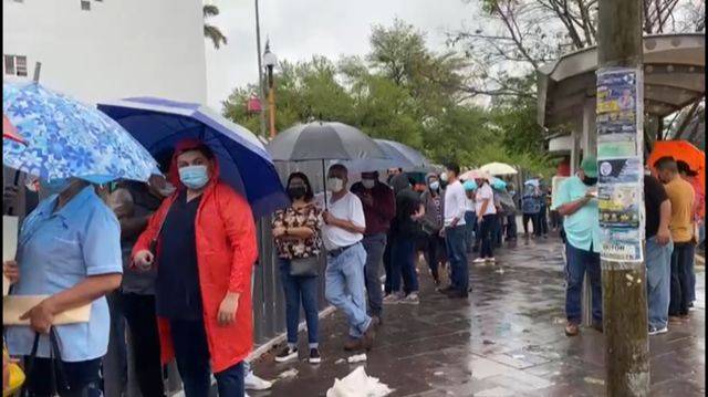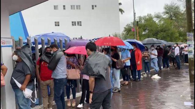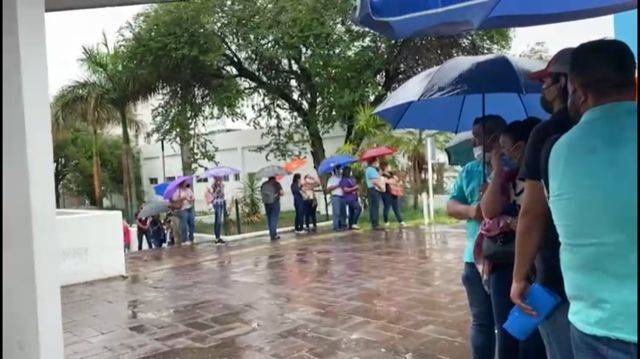 A la intemperie, soportando la lluvia, y en el mejor de los casos cubriéndose de las inclemencias del tiempo con un paraguas o una bolsa gigante de basura, cientos de personas hacen fila al exterior del Hospital General a la espera de la aplicación de la vacuna contra el covid-19.