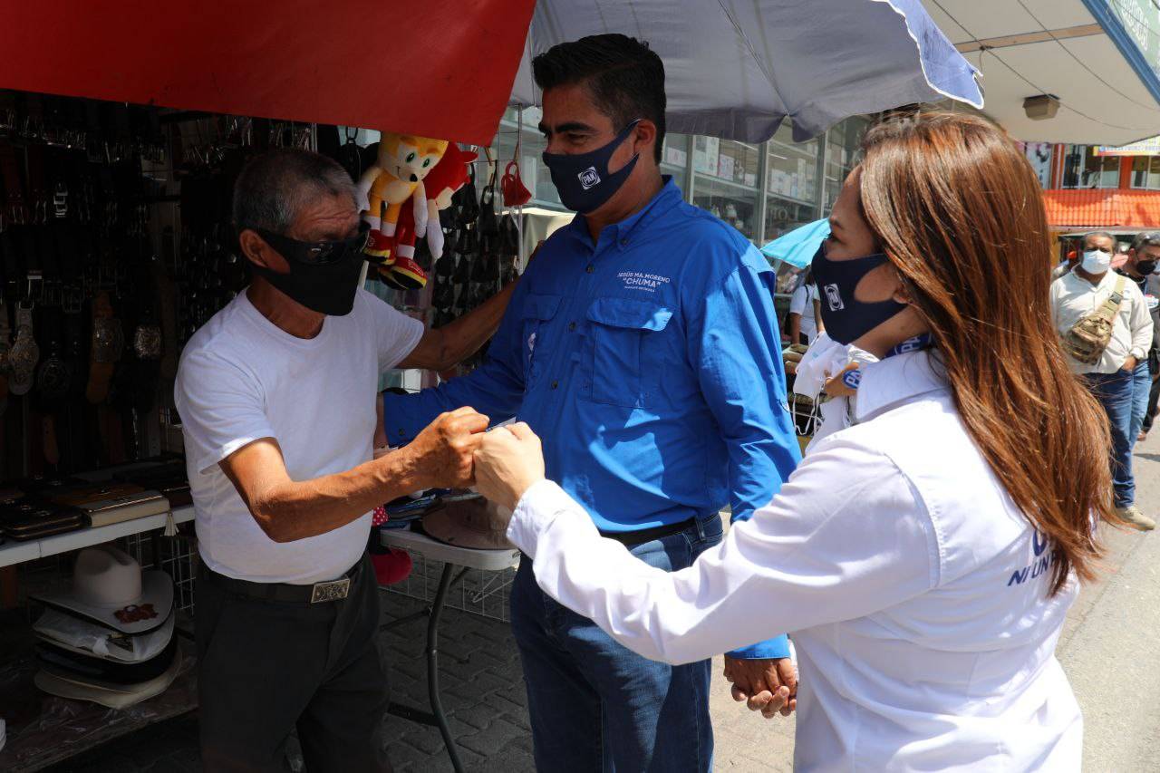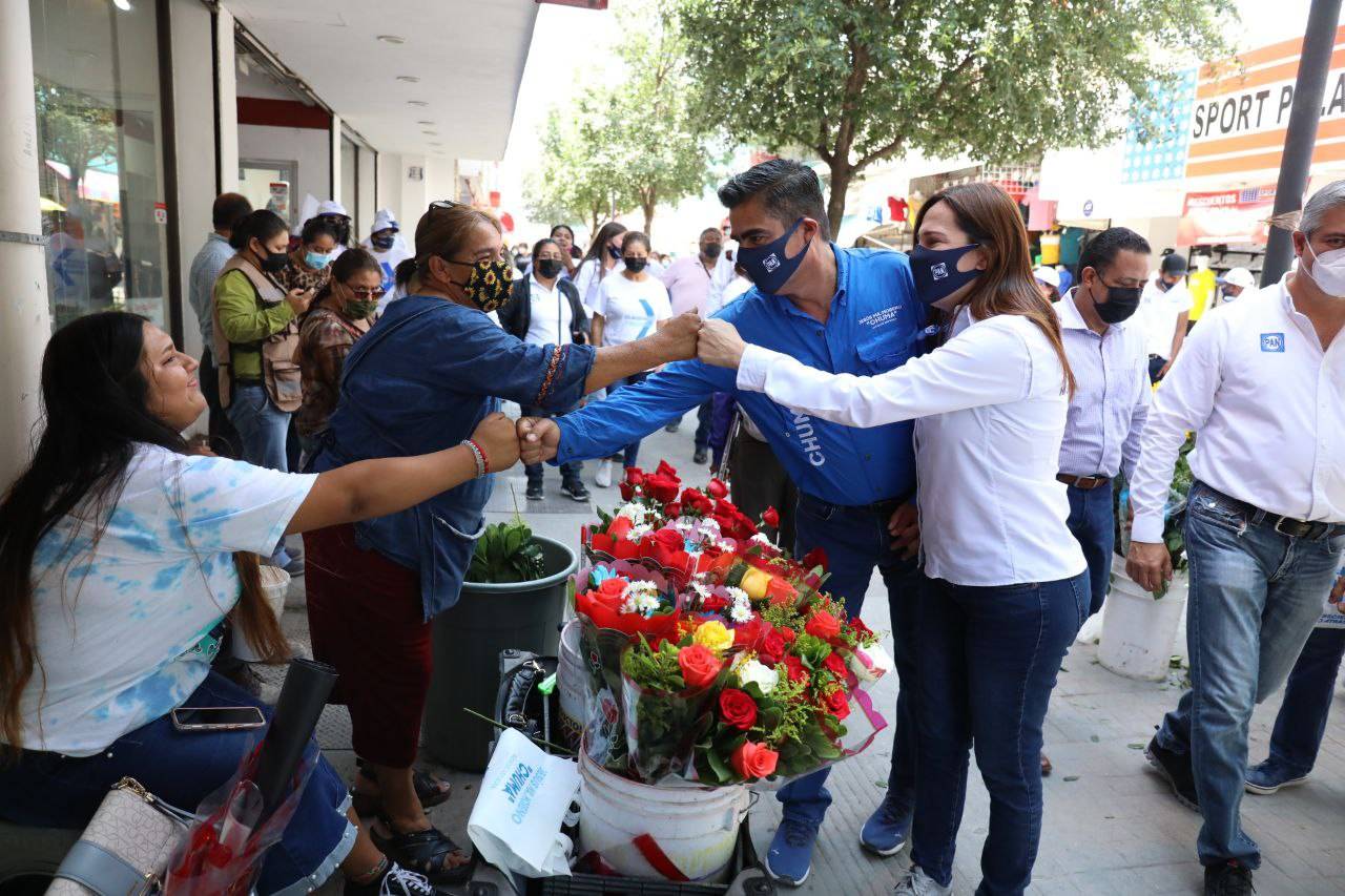 Acompañado de su esposa Maribel, Chuma escuchó las peticiones que tanto vendedores ambulantes y establecidos, así como transeúntes le plantearon para lograr la recuperación que tanto han esperado.