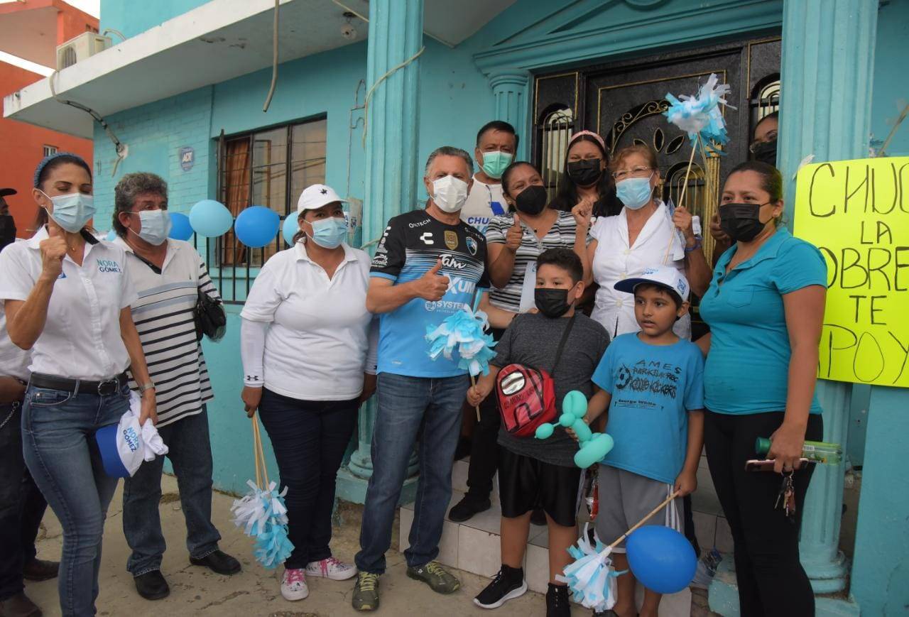 Chucho Nader enfundado en la playera Azul de la Jaiba Brava, acompañado siempre de su esposa, Aída Féres de Nader y la candidata a las Diputación Local Nora Gómez González, señaló que la colonia Obrera ha sido reflejo del cambio positivo que ha tenido la ciudad en los últimos dos años y medio.