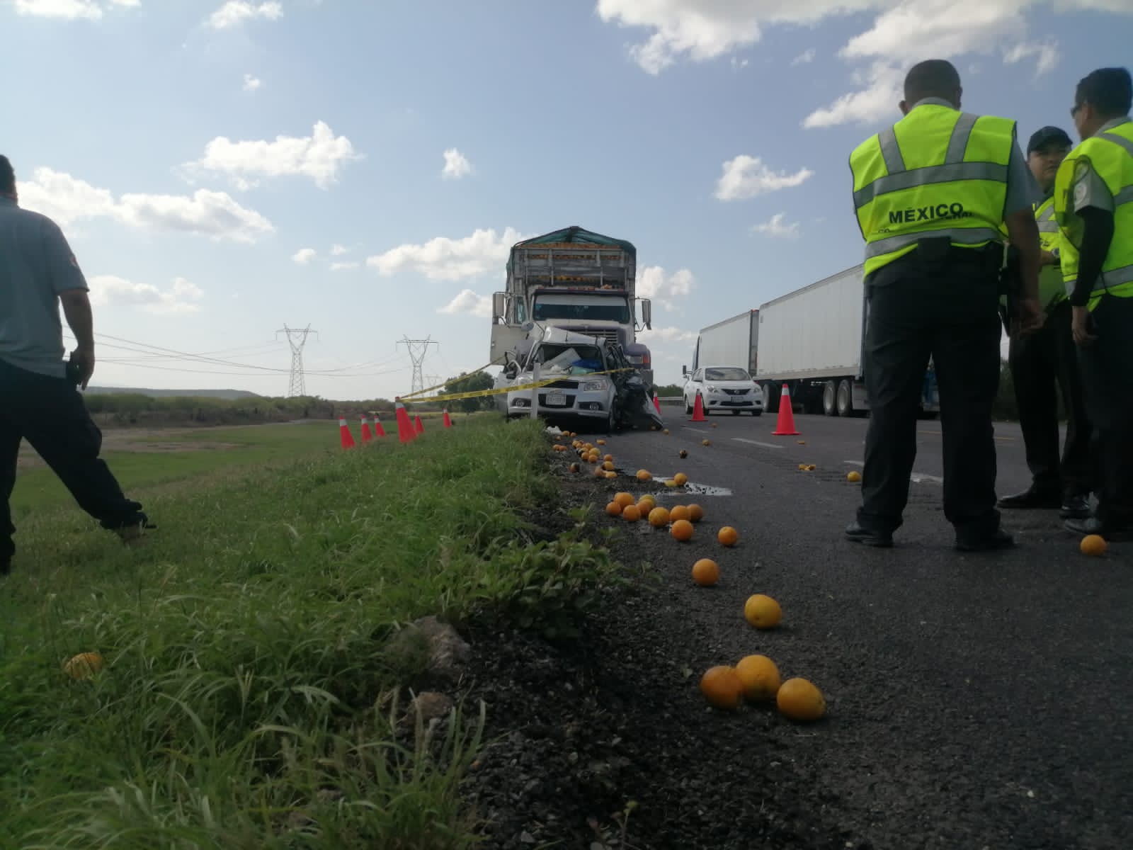 En el lugar quedó abandonado un camión tipo torton cargado con 25 toneladas de naranja.