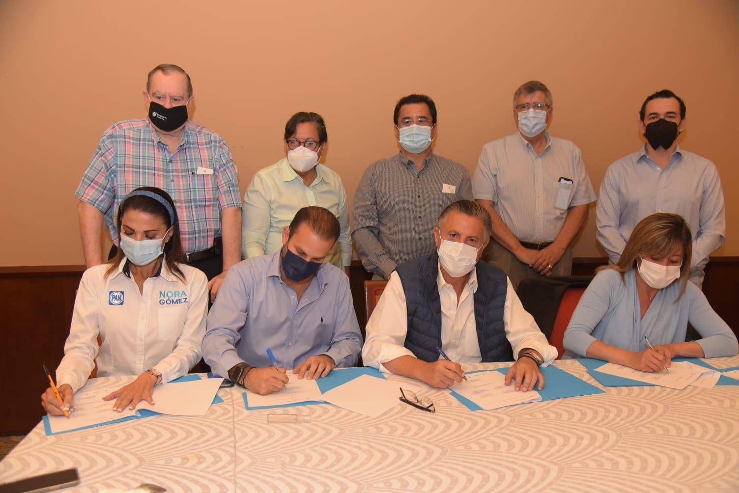 Chucho Nader, y los candidatos del Partido Acción Nacional a las Diputaciones Federal y Locales de los distritos 08, 21 y 22, Rosa González, Mon Marón y Nora Gómez, respectivamente, firmaron este viernes los compromisos contenidos en la Agenda de Seguridad y Justicia para la zona conurbada de Tampico, Ciudad Madero y Altamira, con el propósito de seguir fortaleciendo la coordinación institucional que garantice entornos de paz y seguridad a la población surtamaulipeca.