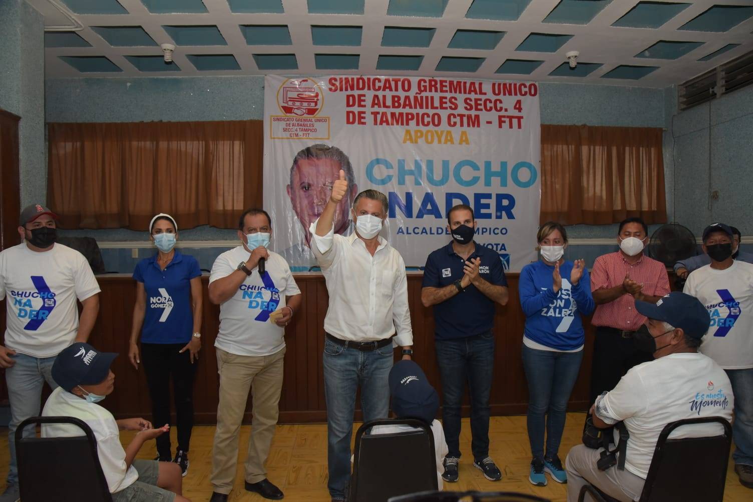 Al sostener un encuentro con los obreros y trabajadores de la construcción adheridos a la sección 4 del Sindicato de Albañiles, el candidato del PAN a la Alcaldía de Tampico, Chucho Nader aseguró que durante los próximos tres años, se impulsará un agresivo programa de obra pública que generará nuevas fuentes de empleo para los agremiados a esta organización sindical y para las empresas constructoras de la localidad.