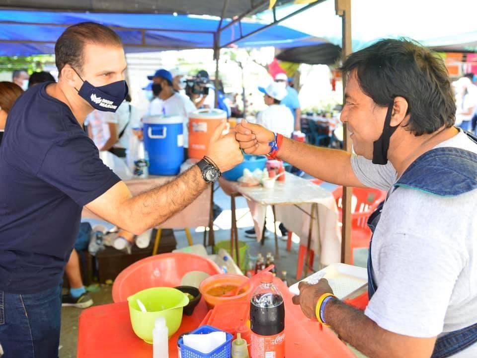 El abanderado blanquiazul, acompañado de Chucho Nader candidato a la Alcaldía de Tampico y Rosa González, aspirante a la Diputación Federal, efectuó un recorrido por el mercado rodante de la colonia Emilio Portes Gil, donde reiteró su compromiso con oferentes y vecinos de seguir legislando a favor de la seguridad y el bienestar de las familias tampiqueñas.