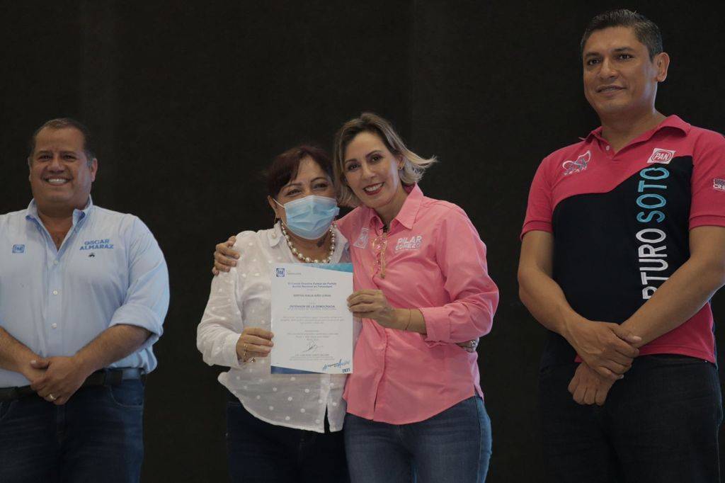 Pilar Gómez estuvo acompañada por Óscar Almaraz, candidato a diputado federal por el Distrito 5; los candidatos a las diputaciones locales por los distritos 14 y 15, Mario Ramos y Arturo Soto, respectivamente, así como el presidente del PAN Victoria, Alejandro Rivera.