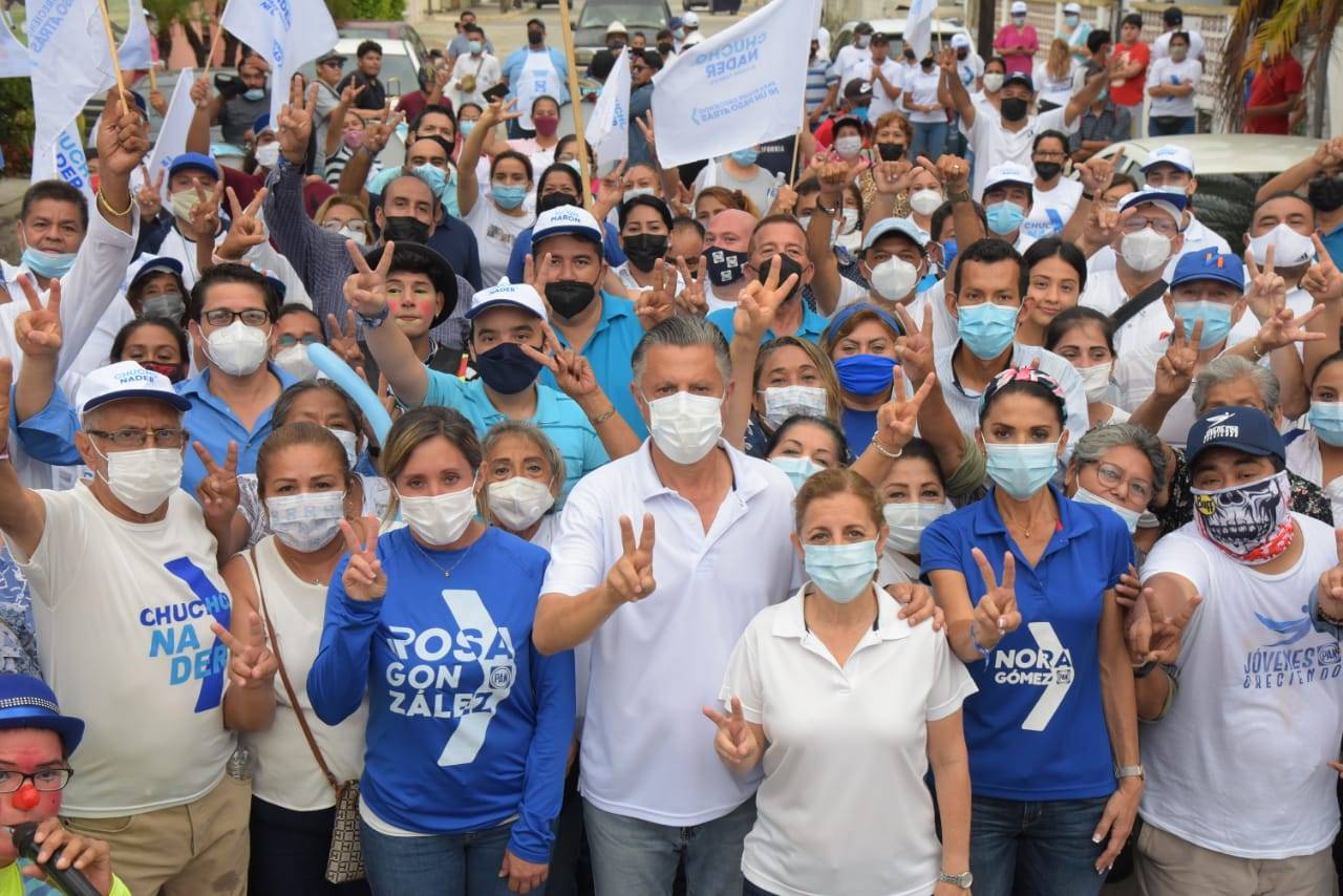 "Los invito a votar por los candidatos del PAN, votar por la seguridad, por el bienestar y por la continuidad de los proyectos y las obras que garantizarán empleo, seguridad, mejor calidad de vida y un mejor futuro para todos; este domingo seis de junio votaremos por Rosa González para la Diputación Federal; por Mon Marón y Nora Gómez para el Congreso local y por Chucho Nader para la alcaldía de Tampico", subrayó.