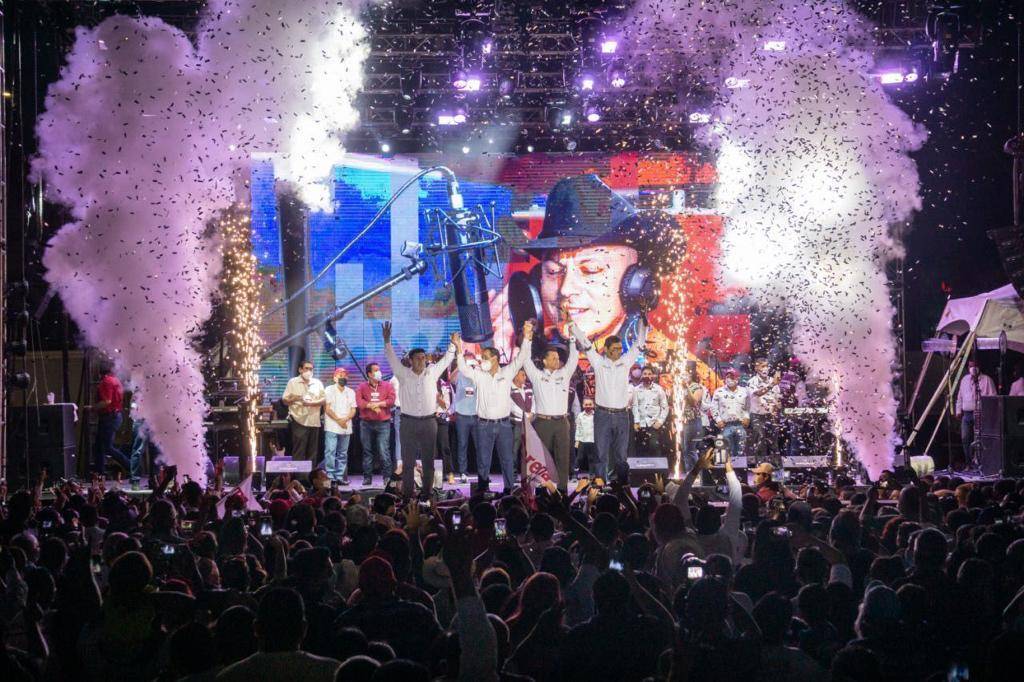 En medio de una fiesta cívica, amenizada por el grupo musical Kumbia Kings, el abanderado de la formula Juntos Haremos Historia, aseguró que el cambio verdadero y de la esperanza nadie lo detiene y se reflejará con el voto masivo de Morena en las urnas el próximo domingo 6 de junio.