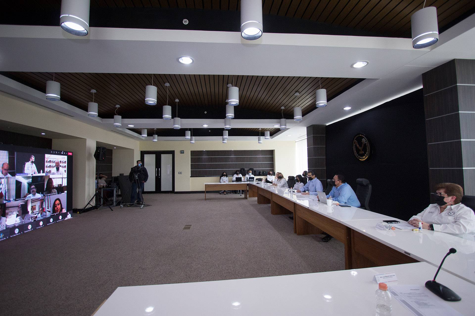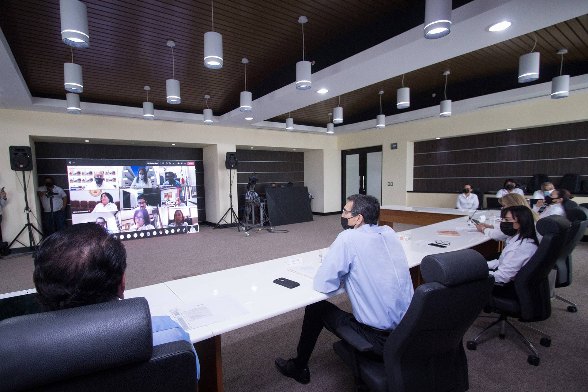 En la reunión, el Rector José Andrés Suárez Fernández estuvo acompañado por el Secretario General, Dr. Eduardo Arvizu Sánchez; la Secretaria de Gestión Escolar, Dra. Teresa de Jesús Guzmán Acuña; la Secretaria Académica, Dra. Rosa Issel Acosta González; la Directora de Servicio Social, Dra. Cinthya Patricia Ibarra González; y la Directora de Recursos Humanos, Lic. Mirna Dalia Saavedra Merrem.