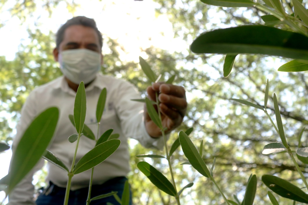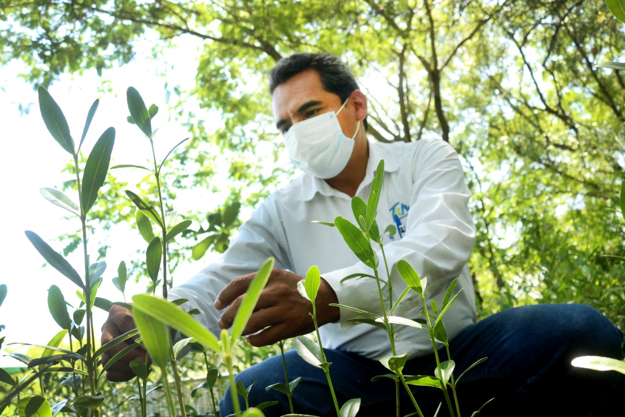 Personal técnico de SEDUMA brinda la protección y el cuidado diario a las plántulas de mangle negro en dicho parque, ya que se requiere combatir en forma permanente las plagas y los insectos, concluyó el secretario.